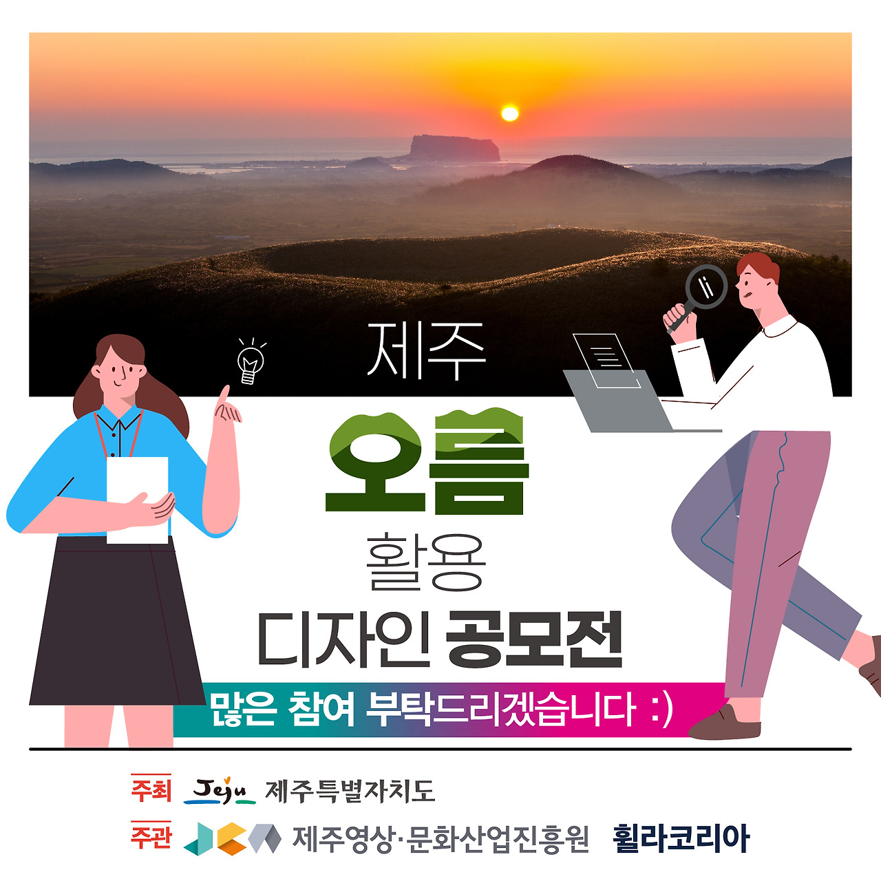 대한민국의 봄,여름,가을,겨울 계절별로 서로 다른 특색있는 아름다움을 뽐내는 제주의 보물 중 하나인 오름! 제주의 아름다움을 담은 ’오름‘을 소재로한 디자인 공모전이 열린다는 소식입니다.