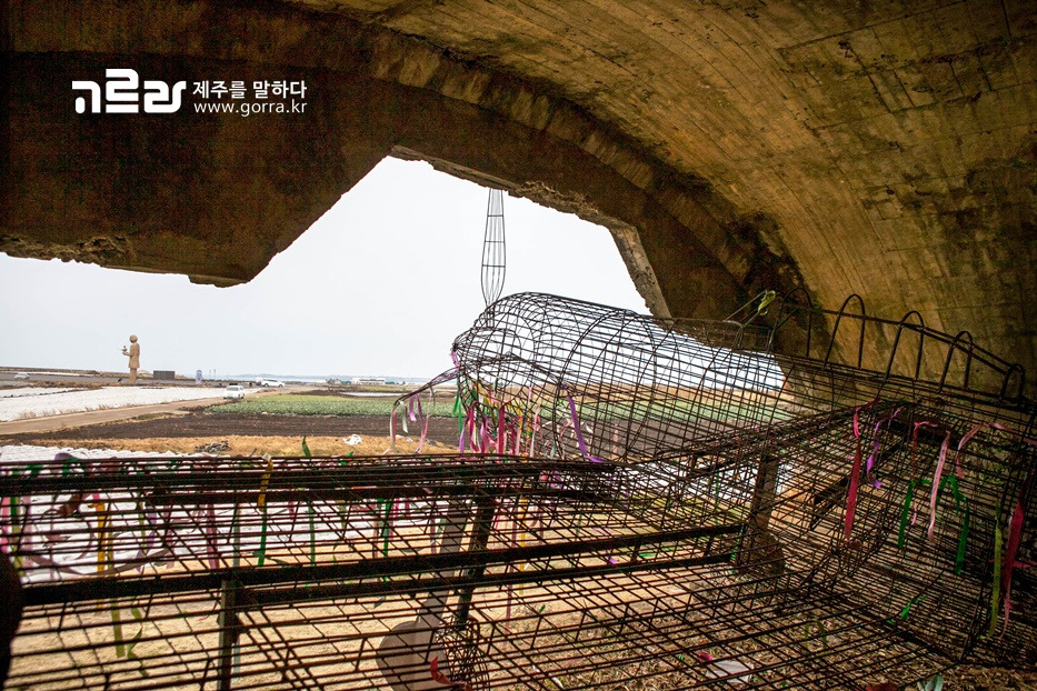 '아래 벌판'이라는 이름을 가진 서귀포 대정읍의 아름다운 평야인 알뜨르. 일본은 1920년대 중반부터 제주도민들을 강제동원하여 이곳에 비행기 활주로를 비롯한 격납고, 탄약고 등의 10년에 걸쳐 만들었다고 합니다. 현재는 논과 밭 사이로 듬성듬성 놓여있는 콘크리트 격납고와 비행기 모형을 볼 수 있습니다.