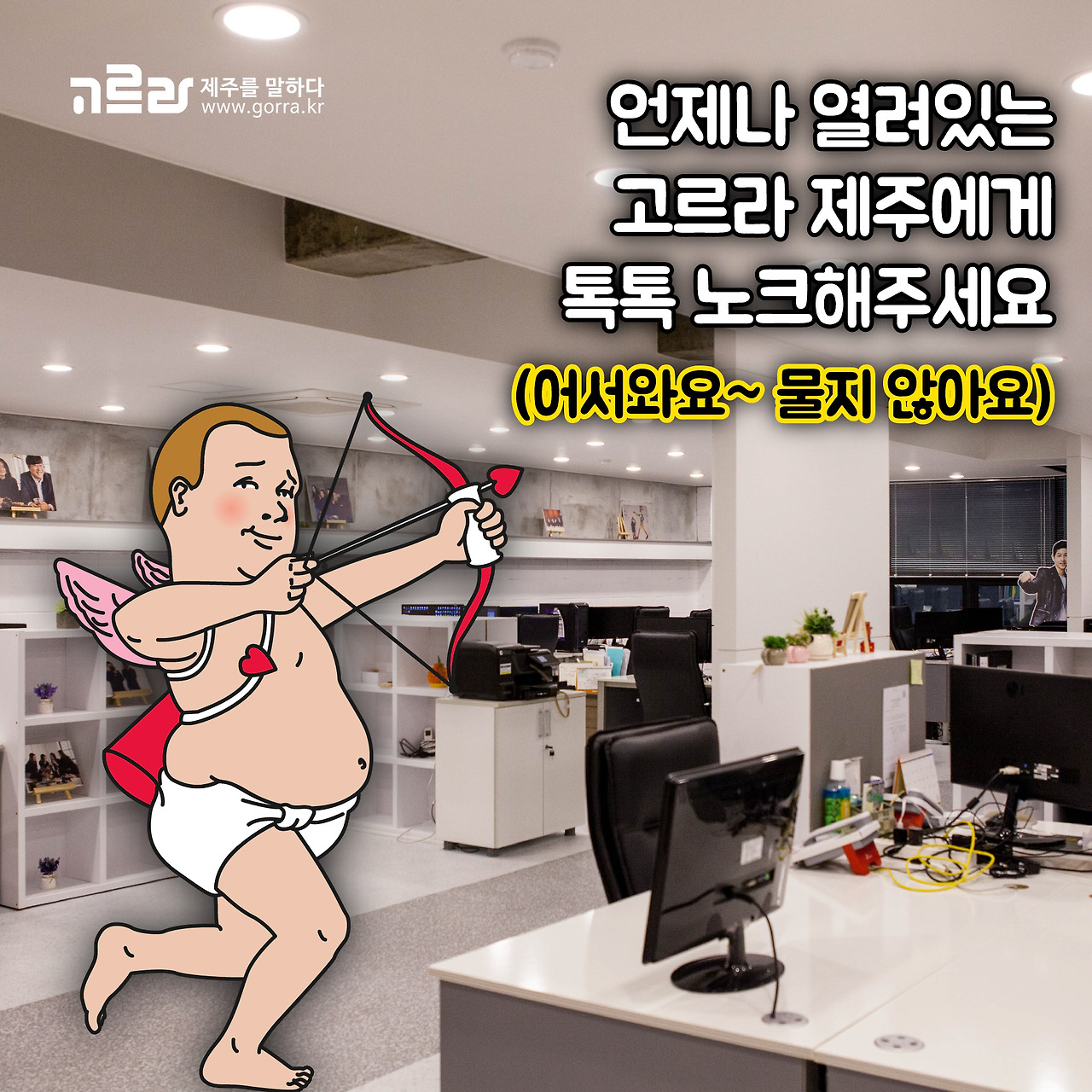"한번 물어보고 싶은데?" 제주 시청에 사무실이 있는 고르라 제주는 온라인과 오프라인 다양한 방법으로 문의하실 수 있답니다~