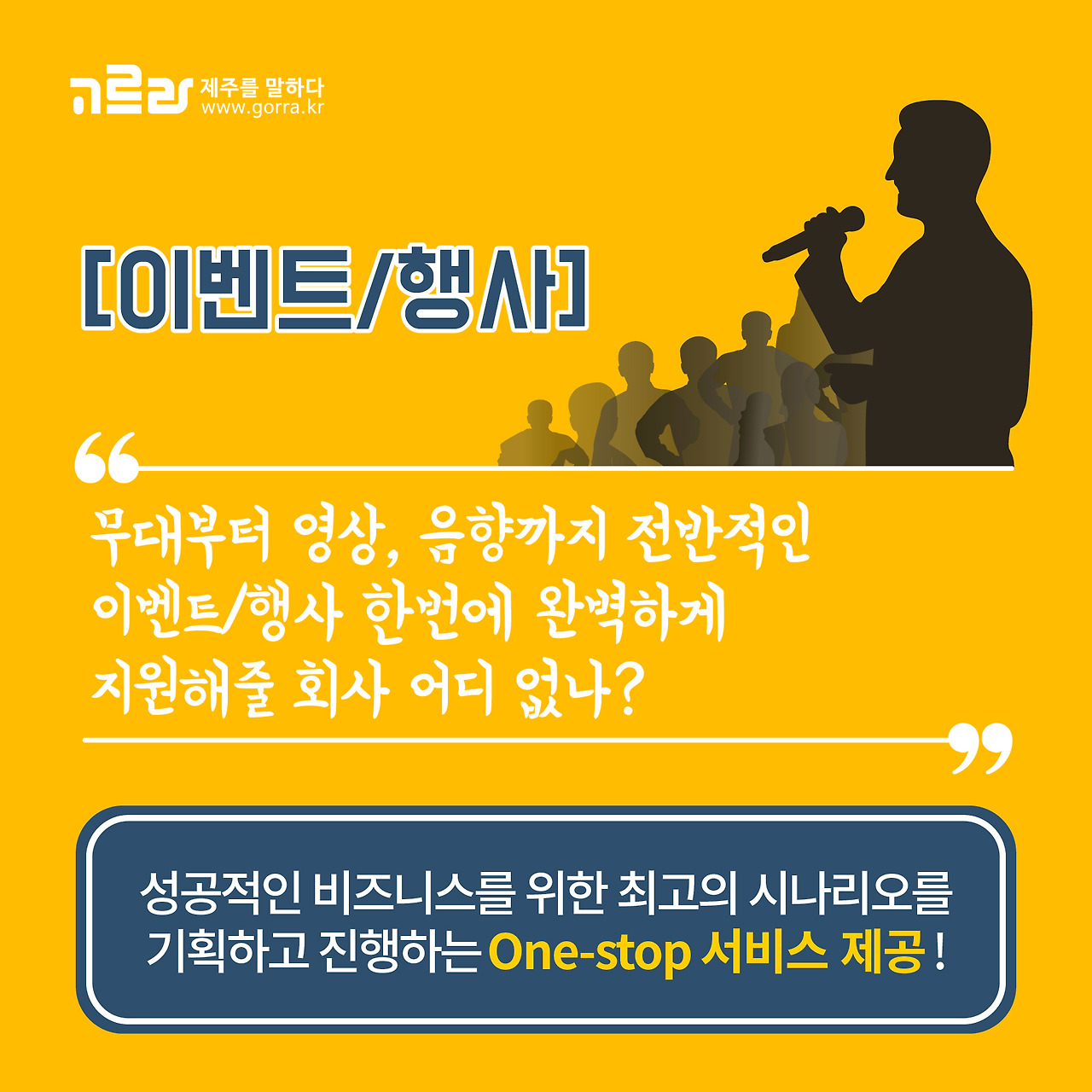 제주에서 SNS 마케팅, 홈페이지 제작, 행사·이벤트 기획 및 운영 교육을 원하실 땐? 언제나 열려있는 고르라 제주로 오세요~! 홈페이지를 확인하시면 각 부서별 프로젝트를 확인하실 수 있습니다.