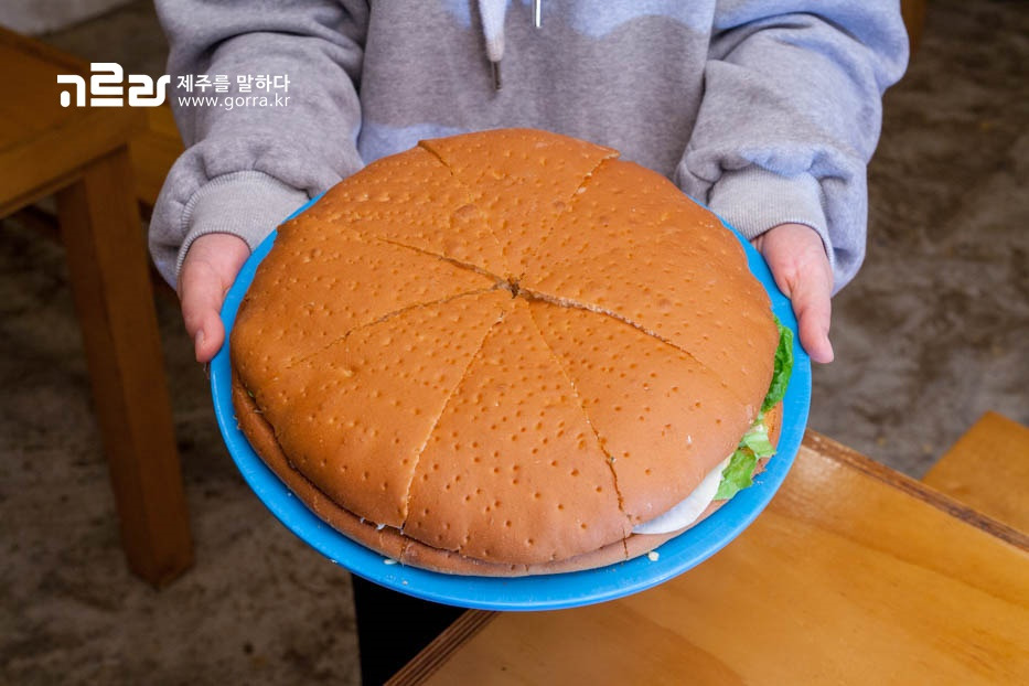 한 조각의 크기가 보통 성인 여성 손바닥 크기 정도로, 여러 명이 함께 먹기에 좋은 메뉴인 제주도 수제버거 맛집 곤경에 빠진 버거! 커다란 크기의 비주얼로 아이들 생일파티에 케이크 대신 포장해가시는 분들고 있다고 하니 이것도 좋은 아이디어죠?