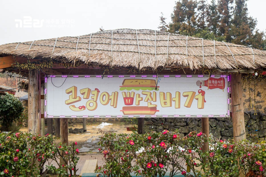 제주의 전통 초가집을 리모델링해 제주스러운 분위기를 가득 담고 있는 곤경에 빠진 버거는 서귀포시 성읍 민속마을 부근에 위치하고 있답니다!