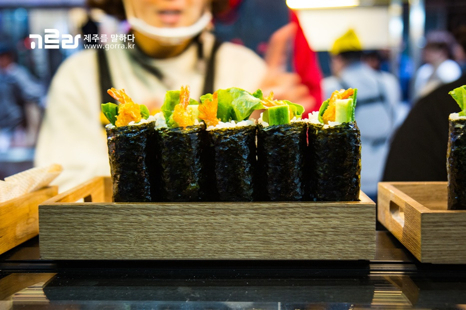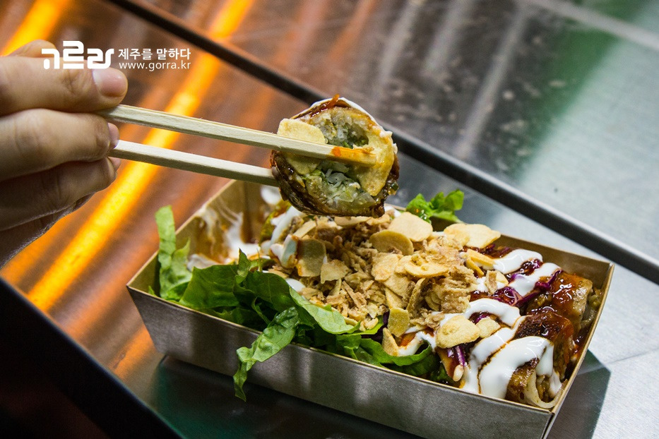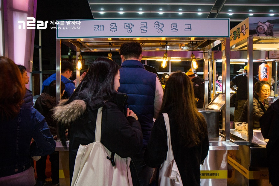 동문 야시장에는 제주의 식재료를 사용해 이곳에서만 맛볼 수 있는 먹거리를 포함, 총 32개의 부스를 마련되어 있다는 사실~ 마리돈까스, 치빗코야끼, 전복문어김밥, 제주당근핫도그, 우유 땅콩 초코스낵, 이색 오메기떡 등 제주스러운 먹거리 천국!