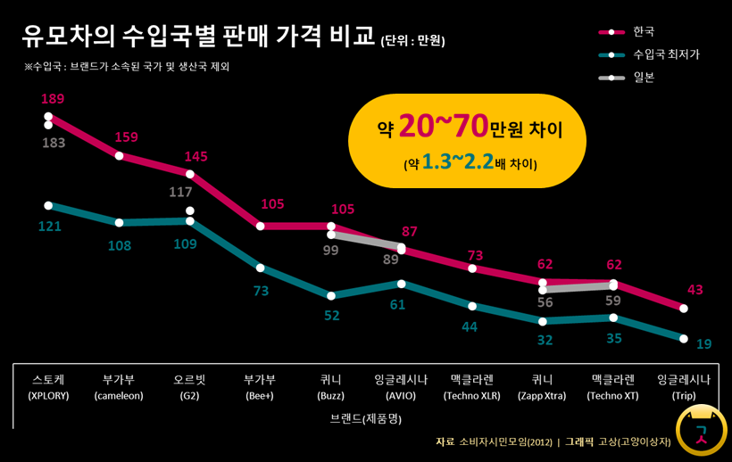 베이비 페어에 다녀오니 머리에 남는 건 유모차의 가격이었다. 유모차를 사주시겠다는 분이 계셔도 선뜻 사달라고 말하기도 어려운 가격. 2012년에 소비자시민모임에서 조사한 것에 따르면, 우리나라 3대 백화점(롯데, 신세계, 현대)에서 판매하는 유모차 중, 해외 브랜드가 90% 이상을 차지한다고 한다. 꼭 국내 브랜드를 사야 한다는 생각을 가지고 있는 것은 아니지만, 해외 브랜드 유모차의 수입국별 판매 가격차가 약 2배에 이르는 것은 문제라고 생각한다.