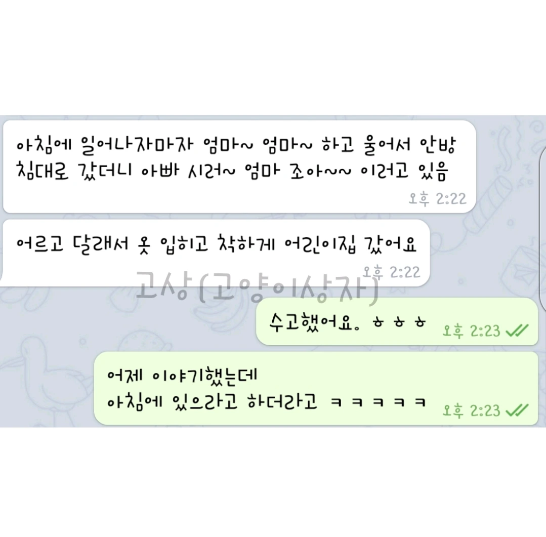 아침에 내가 집에 없는 날은, 아침 상황에 대해 남편과 공유한다. ⓒ고상(고양이상자)