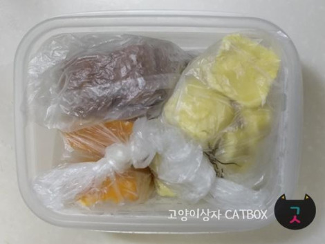 ▲ 남은 큐브를 종류별로 비닐 담아 한 통에 넣는다. 통에 어떤 큐브가 들어있는지 견출지로 표기해 놓으면 찾기 편하다. ⓒ고상(고양이상자)