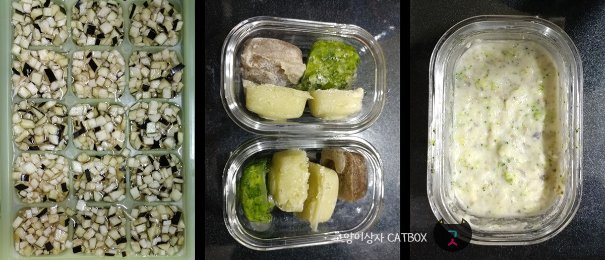 중기까지는 이유식 재료를 곱게 다져서 준비했고 쌀의 크기를 조절해서 이유식을 만들었다. 하지만 후기부터는 이유식 재료의 크기도 조절했다. 아가의 상태에 따라 그에 맞는 크기의 재료를 사용해야 했기 때문에 이유식 재료를 다듬는 데 시간이 많이 소요됐다. 또한, 쌀을 넣지 않고 손질한 재료만으로 간식을 만들기도 했다.