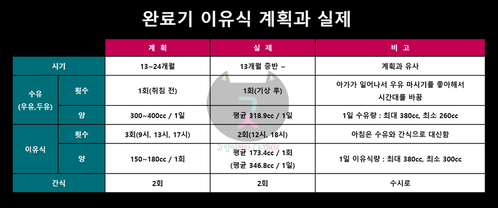 이유식 실행 결과 분석 : 계획과 실제 - 현재 글