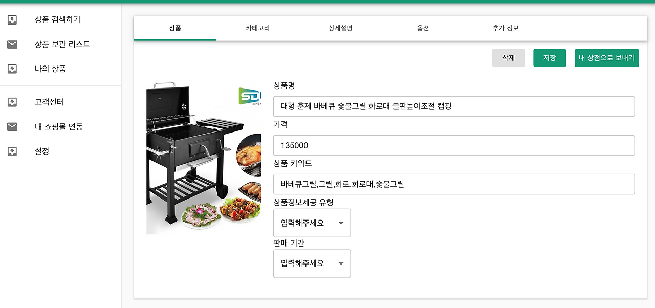 3. 상품 업로드에 요구되는 필수 정보를 자동화한다.