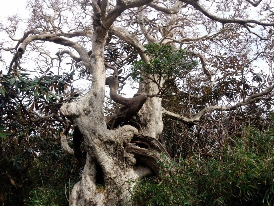 정상부에서 조몬스기로 내려오는 길에는 고도에 따른 식생 변화를 뚜렷이 관찰할 수 있다. 조릿대가 끝나는 지대에서 시작되는 나무는 랄리구라스다. 일본에서는 만병초(만병을 고칠 수 있는 식물)로 알려져 있는 이 나무는 네팔의 국화이기도 하다. 이 랄리구라스 줄기 사이로 등산로가 터널처럼 나 있어서 제주도 곶자왈을 연상시킨다.