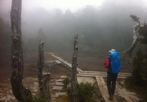 요도가와 산장에서 한 시간 반 정도를 걸으면 하나노에고 습지에 닿는다. 해발 1600~1700m 고지대에 습지가 있다는 것도 특이한데 그 주변을 고사목이 장식하고 있어서 더욱 신비롭다. 촉촉한 대지 위에 마른 고사목이 대비되면서도 잘 어울렸다. 보통 물이 있는 곳 근처에는 짐승이 있는데 여기서는 서로 이를 잡아주는 야쿠시마 원숭이 한 쌍을 볼 수 있었다.