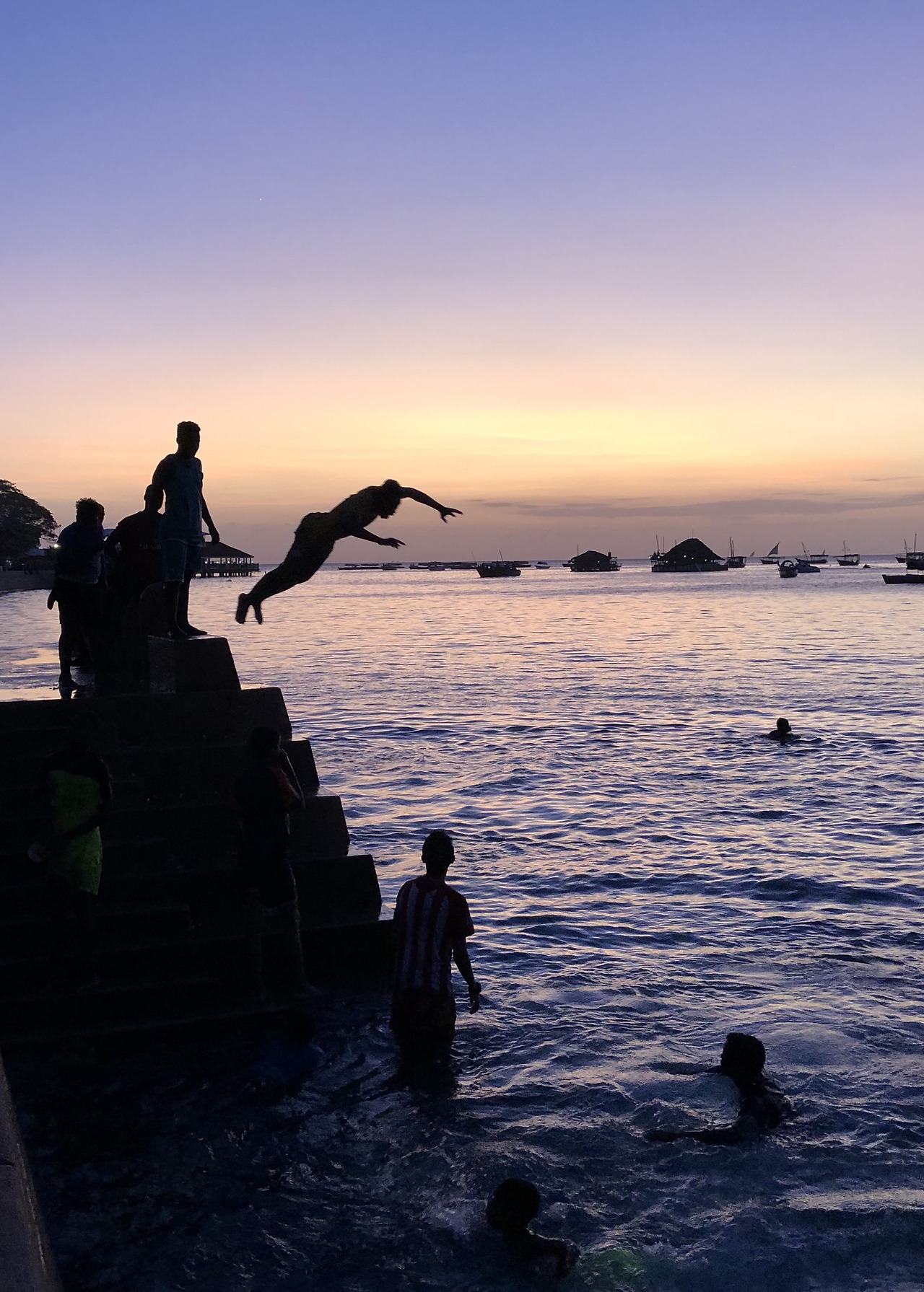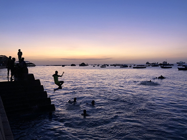 잔지바르는 관광객들이 많이 찾는 휴양도시지만 잔지바르의 주인은 아프리카 현지인이었다. 야시장에서든 해변에서든 현지인들은 주인답게 자신들의 도시를 즐겼다. 특히 석양에 펼쳐지는 아이들의 다이빙 놀이가 인상적이었다. 진한 생의 에너지를 느낄 수 있어서 수없이 카메라 셔터를 누르게 된다. 스톤타운의 여행자들은 현지인들의 즐거움과 흥에 기대고 동화되어 행복을 느끼게 된다.