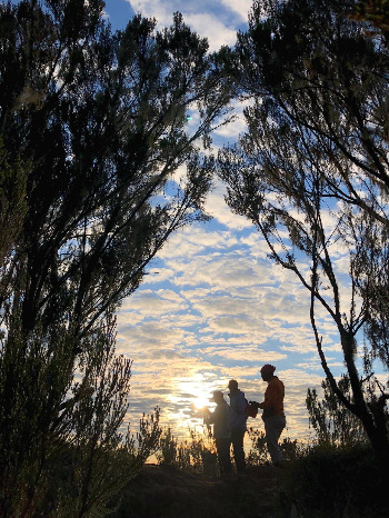 킬리만자로산의 동쪽 사면에 있는 만다라 대피소는 해돋이 명소이기도 하다. 아침 일찍 일어나 해돋이를 보았다. 해돋이를 본 뒤에는 분화구도 돌아보았는데 전날 오른 곳과는 식생이 달랐다. 관목과 초지가 주를 이루고 있어서 시야가 시원해 정상부를 관망하기 좋았다. 그리고 들꽃이 너무나 예뻐서 킬리만자로를 거대한 식물원이라 부를 수 있을 것 같았다.