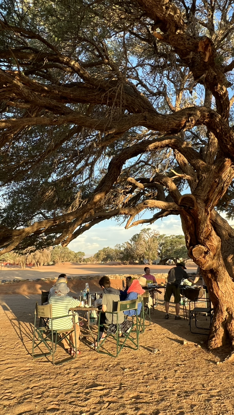 캠핑 사이트와 사이트 간격이 그렇게 넓은 캠핑장은 처음인 것 같다. 각 사이트는 커다란 아프리카 아카시아나무를 중심으로 원형 모양으로 형성되어 있었다. 사이트 크기가 커서 텐트 스무 동도 충분히 칠 수 있을 것 같았다. 아카시아나무가 타프 기능을 해줘서 시원하게 캠핑을 즐길 수 있었다.