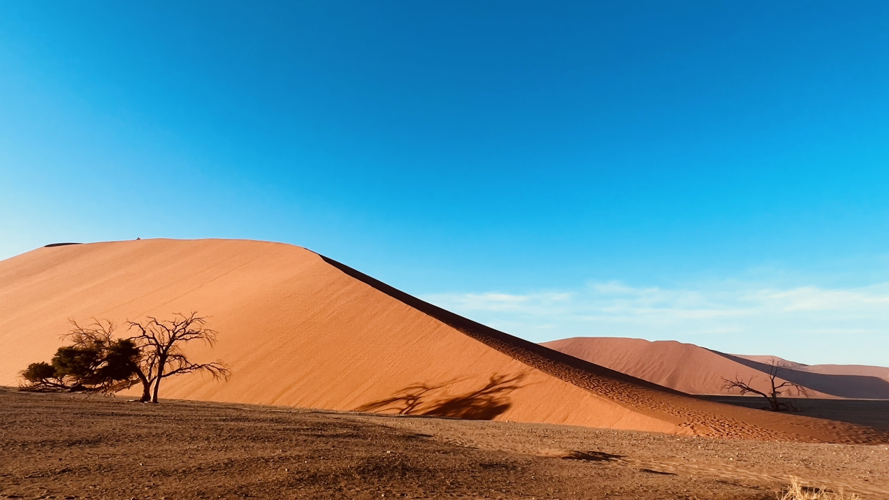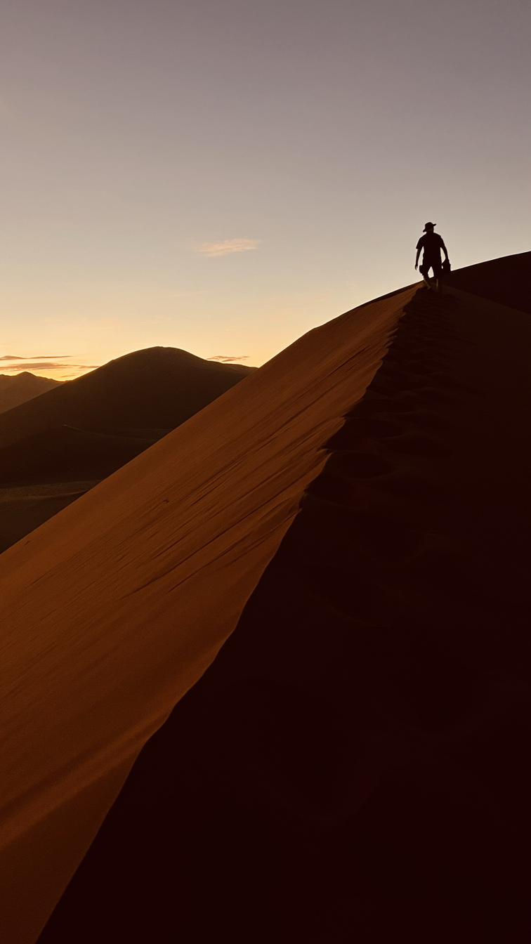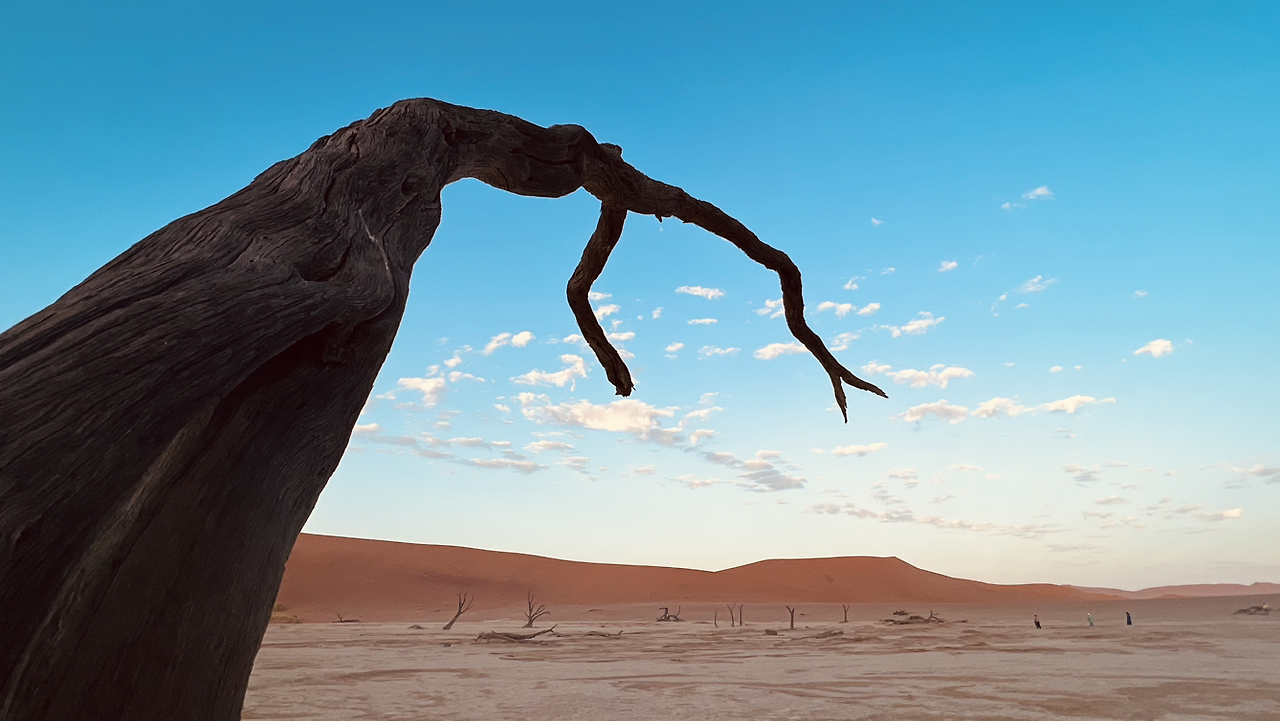 바람의 속삭임을 들으며 해가 나타나길 기다렸다. 나미비아 동쪽 사바나 지역과 서쪽 사막을 가르는, 남북으로 길쭉한 산맥을 천천히 적셔가며 해가 솟아올랐다.