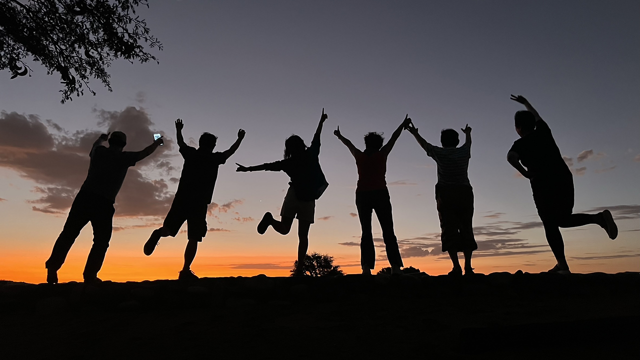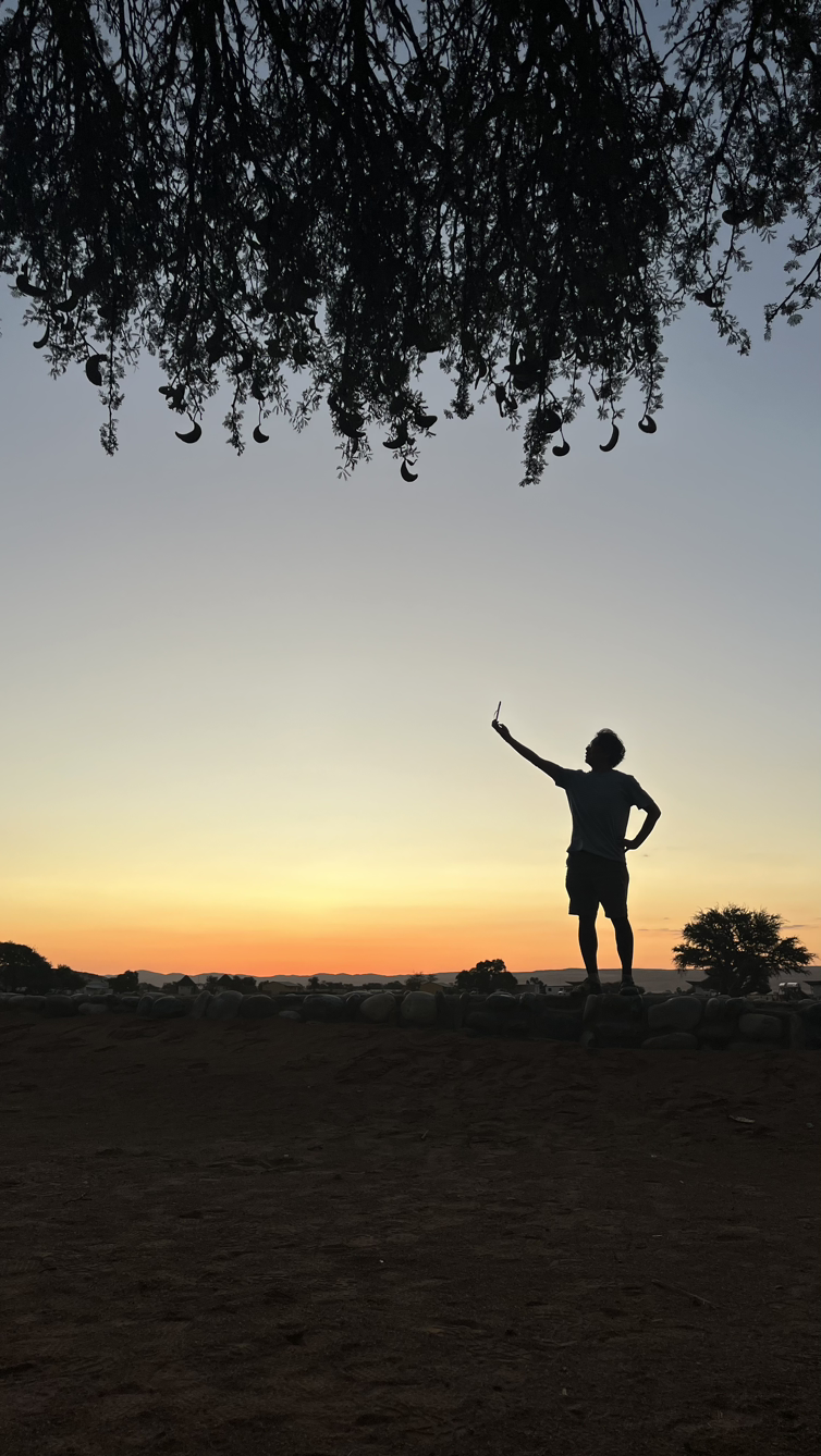 나미비아에서 맞은 석양 중에는 세 번째로 좋았지만, 그 정도로도 충분히 좋았다. 다른 두 번의 석양은 너무 좋았고. 석양을 배경으로 아카시 나무 아래서 실루엣 사진을 찍었는데 제법 잘 나왔다. 석양에 취한 최고령 참가자까지 점프샷에 동참하셨다.