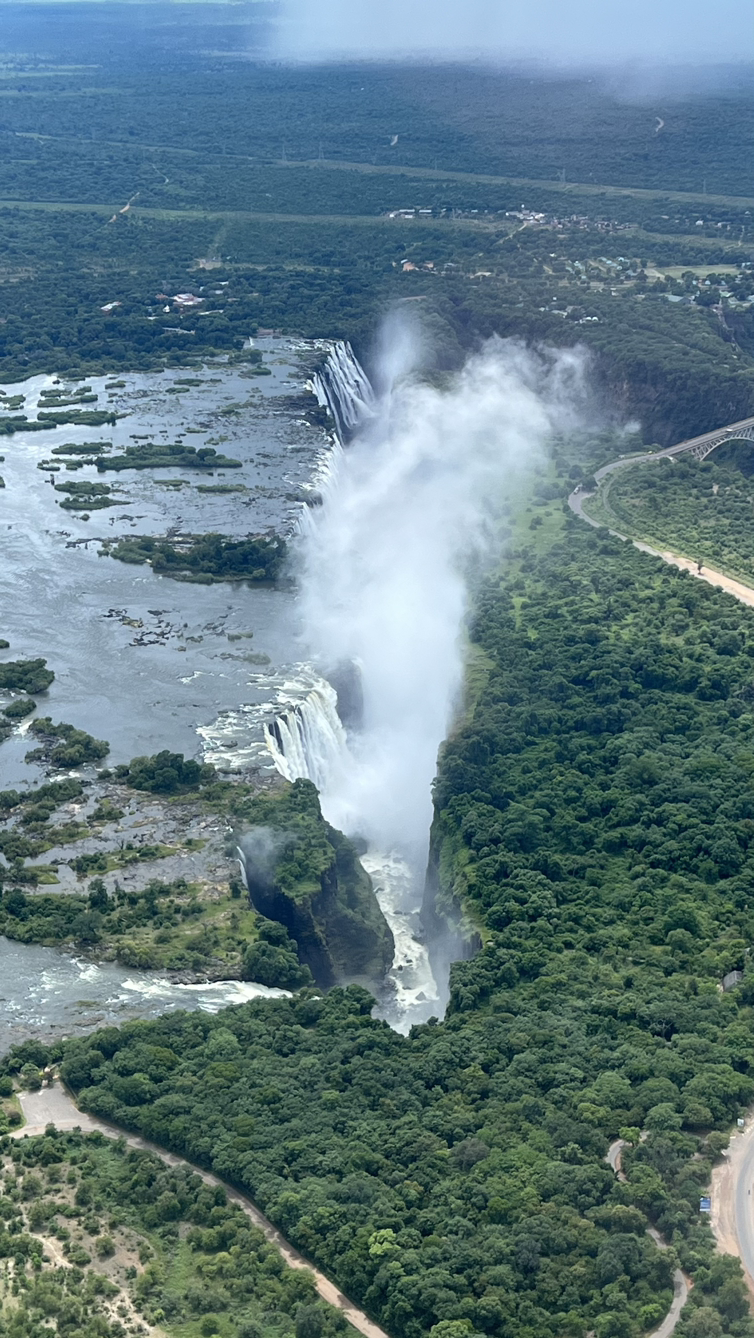 다음은 헬기투어다. 헬기를 타고 잠베지강을 따라 내려와서 폭포 위를 8자 모양으로 돌며 관찰한다. 빅토리아폭포는 1.7km에 달하기 때문에 폭포를 한눈에 보는 방법은 헬기투어뿐이다.