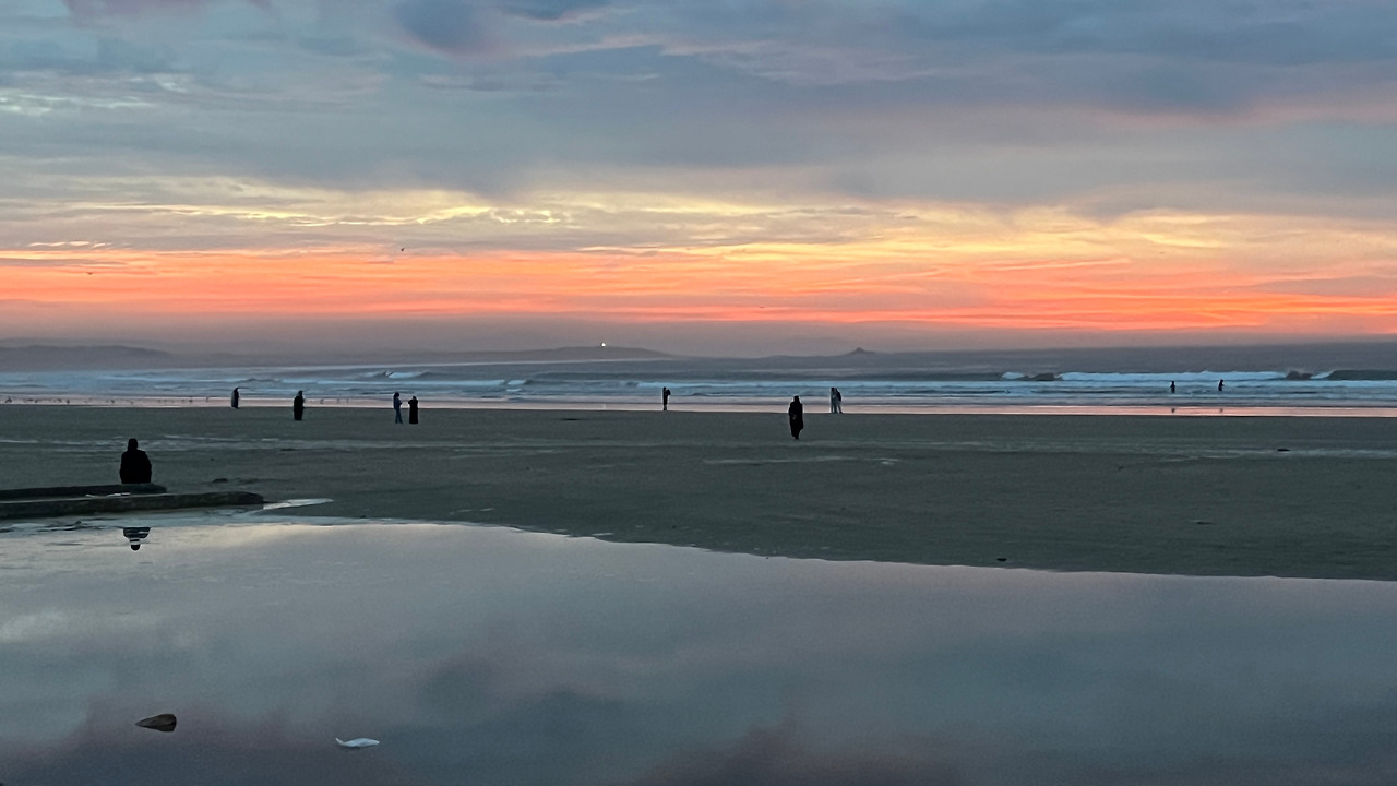배불리 먹고 숙소에서 한숨 자고 오후 늦게 나왔다. 대서양의 석양을 보러 나왔는데 구름이 많아 실망했다. 하지만 그런 상황에서도 에사우이아는 은은하고도 진한, 남다른 석양을 보여주었다. 모로코 여행의 ‘커튼콜’로 부족함이 없었다.