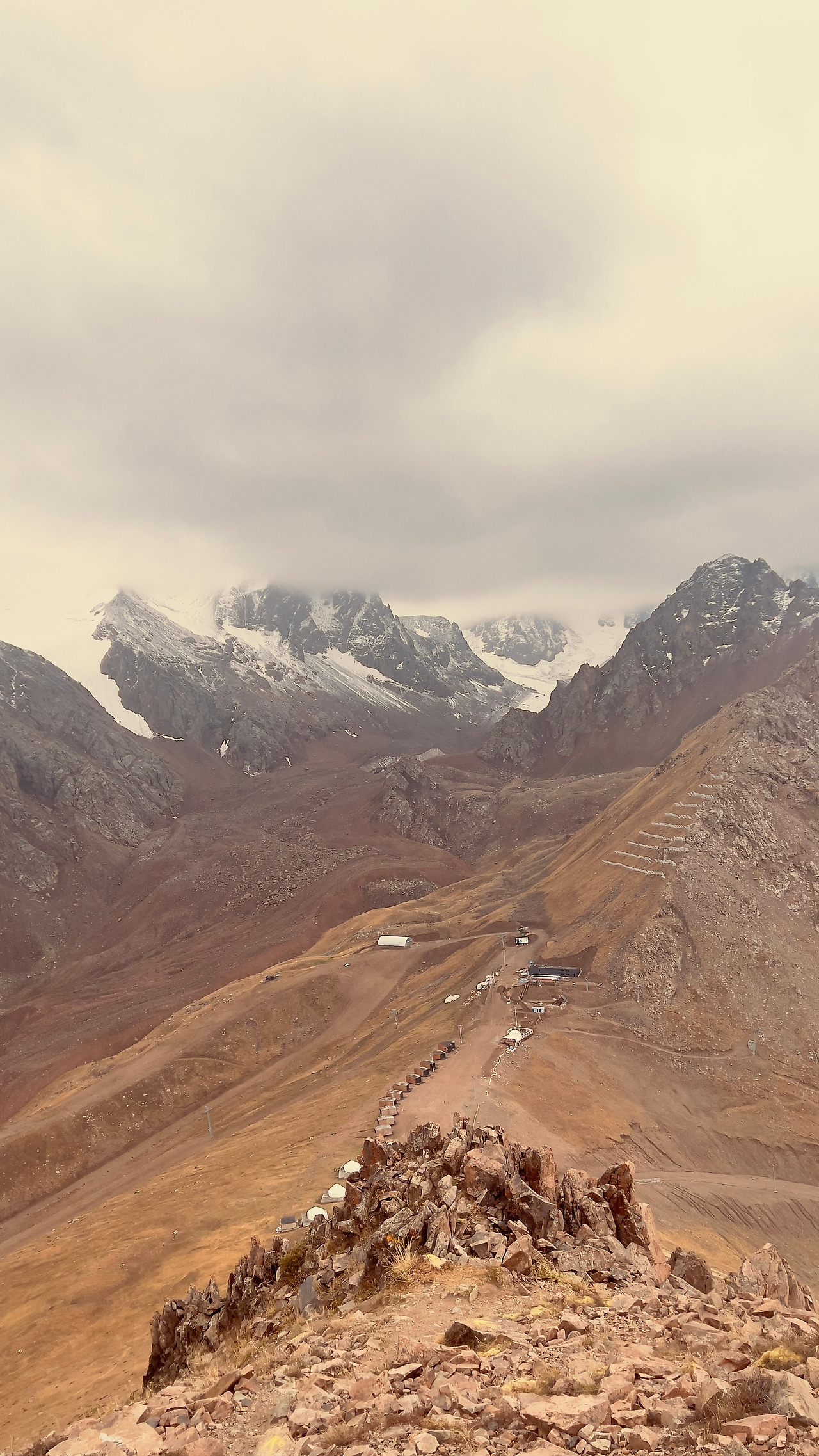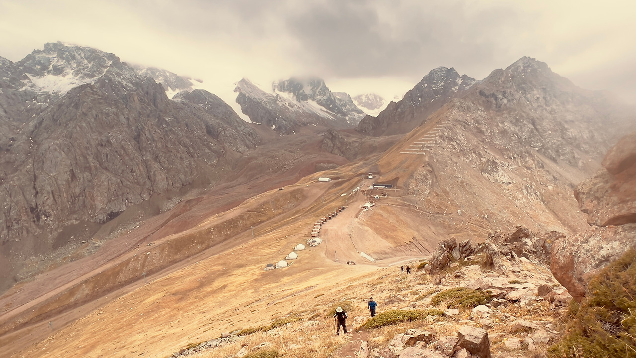 천산산맥의 산세는 보통의 일반인이 경험해 보지 못할 만큼 웅장하다. 알프스나 돌로미테나 캄차카가 주로 3000~4000m 산 주변을 걷는 트레킹인데 천산산맥은 5000~6000m 산이 즐비하다. 히말라야 다음으로 웅장한 산세를 자랑한다. 이런 산군을 대도시에서 숙박하며 당일로 경험할 수 있는 것은 복이었다.