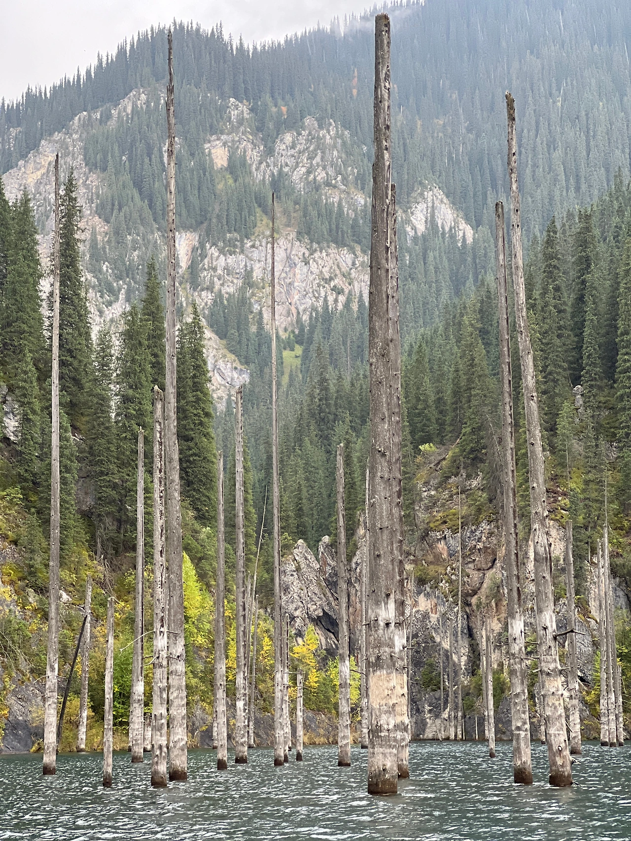 2020년 답사한 이식호수는 그런 천산산맥의 매력을 확인할 수 있는 곳이었다. 송블락이나 쿨사이 호수에 비해 덜 알려진 곳이었지만 이곳도 충분히 좋았다. 호수를 둘러싸고 바위산과 침엽수림 그리고 단풍숲과 설산까지 두루 만끽할 수 있었다. 호수만 따라서 걷는 것만으로도 이 다채로운 풍경을 모두 즐길 수 있었다.