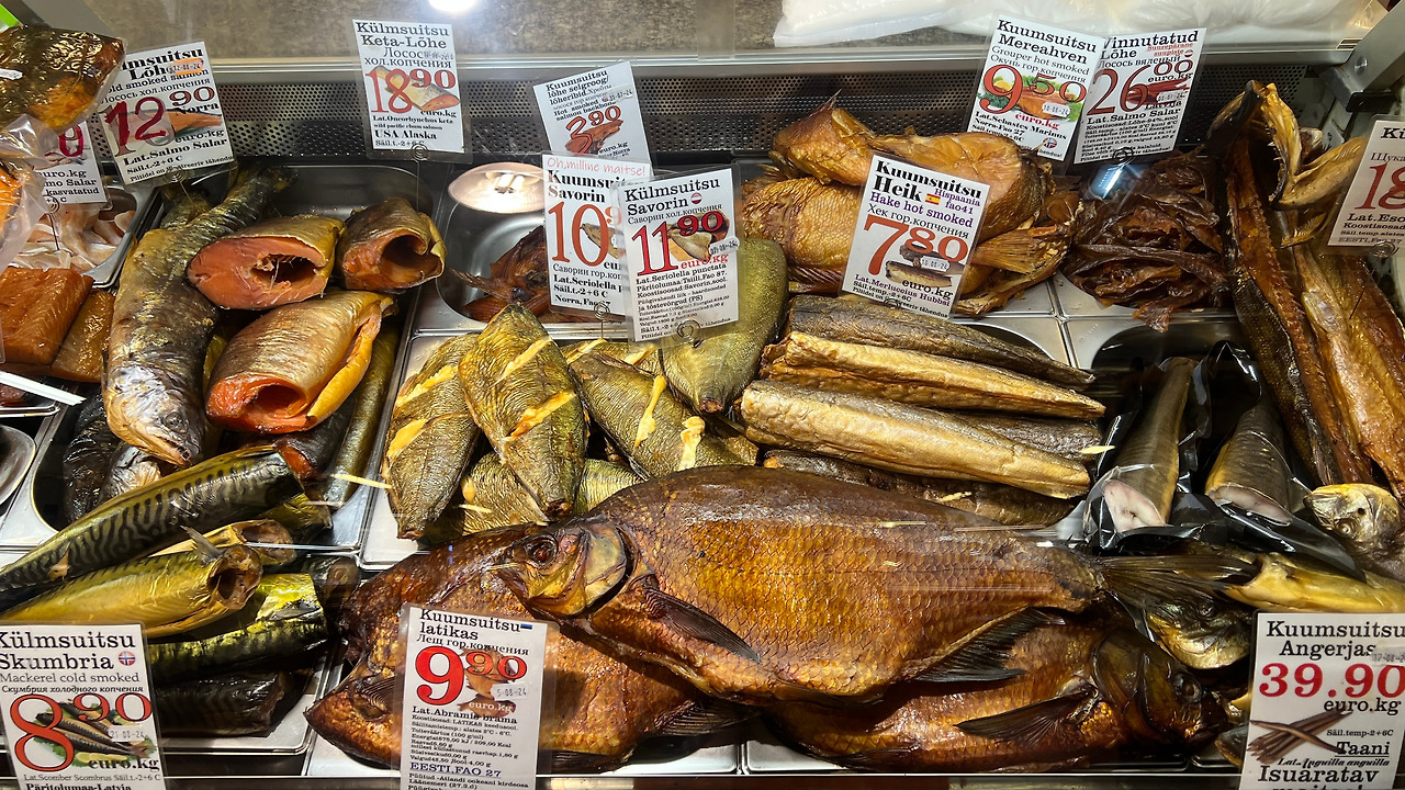 ‘발트에서 유작정 한 달 살아보기’의 베이스캠프로 삼으려는 리가에서의 음식이 특히 좋았다. 세상에서 가장 맛있는 피시수프도 리가에서 먹었고, 홍합찜도 리가가 가장 좋았다. 무엇보다 재래시장의 생선 초절임집이 압권이었다.