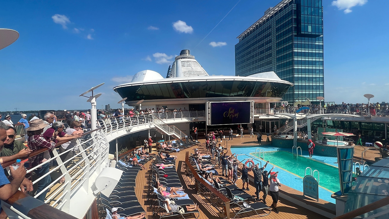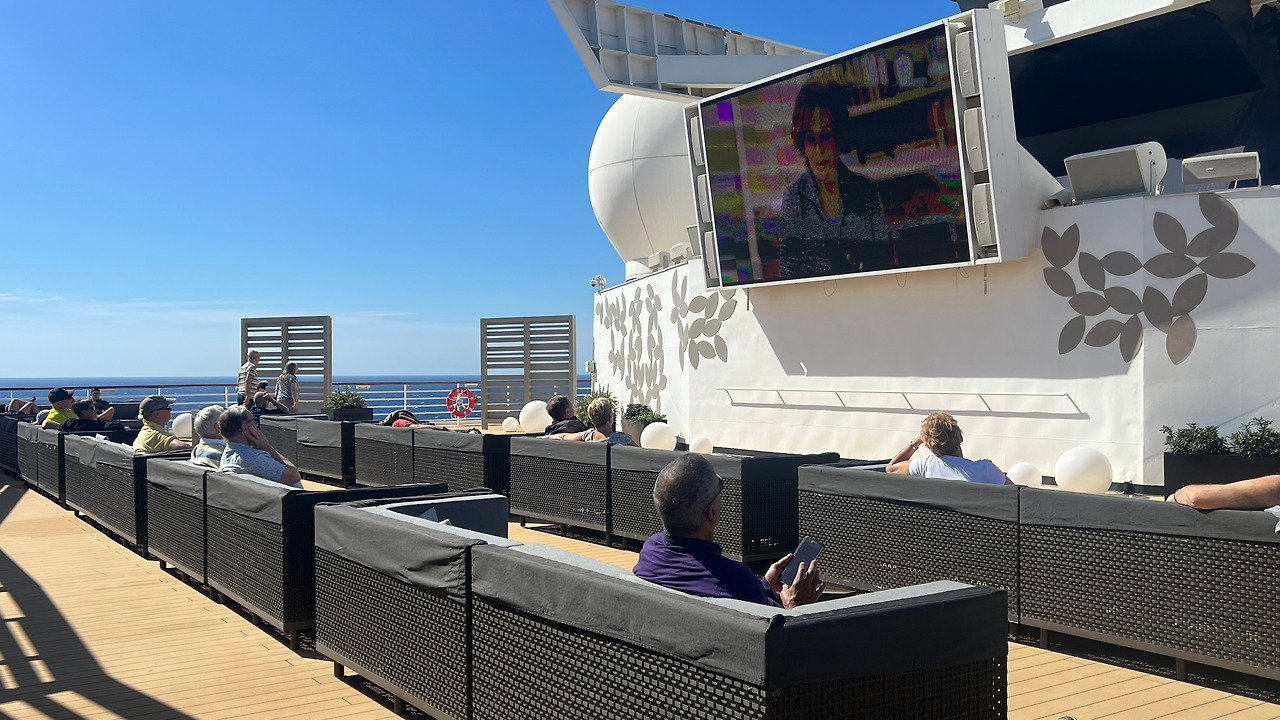 그런데 며칠 지내다 보니, 특히 씨데이가 많은 아이슬란드-스코틀랜드 루트에 있다보니 크루즈선 안에서 시간을 많이 보내게 되는데, 장점이 많이 보인다. 일단 셀리브리티와 노르웨지안이 신문사라면 로얄캐리비언은 방송사다. 실시간 방송 시스템이 잘 구축되어 있어서 텔레비전만 켜 놓으면 대충 상황을 알 수 있다.