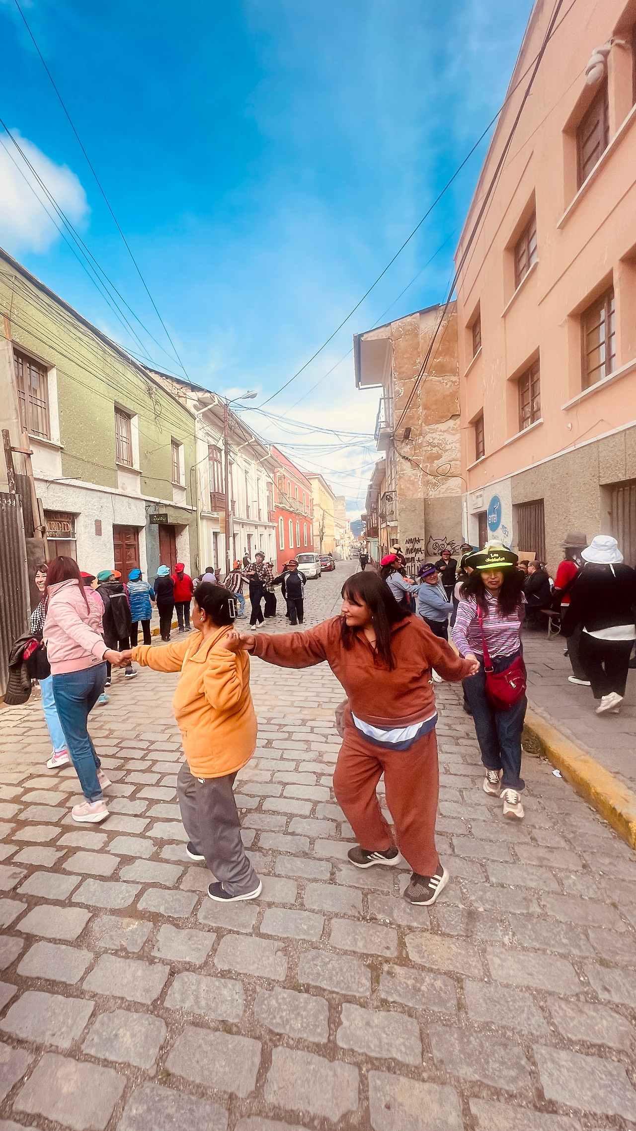 하지만 볼리비아에 대한 굳은 미움은 라파즈 도착 하루 만에 스르르 녹아버렸다. 라파즈 구시가지를 걷는데 길에서 둥글게 맴을 돌며 춤을 추는 볼리비아인 무리를 발견했다. 영락없는 강강술래였다. 그들은 초대를 마다하지 않았고 우리는 동참을 마다하지 않았다. 뭐지? <세계 테마기행> 찍는듯한 이 분위기는? 이 양반들 매력 있는데!