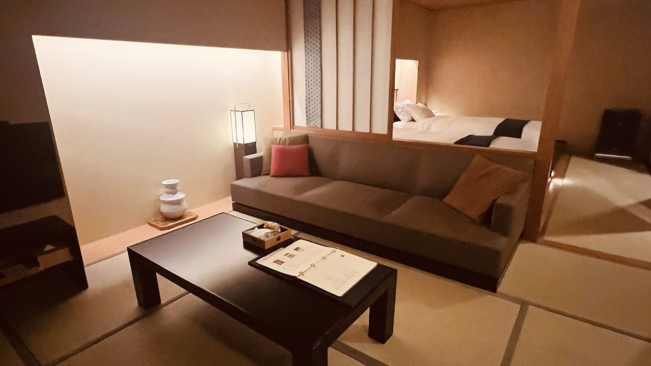 어떻게 기존 료칸을 리노베이션 했나 궁금했는데, 직접 숙박해 보니 더한 것보다 뺀 것이 더 눈에 띄었다. 일단 료칸 로비와 방에서 ‘예술’을 거세했다. 그 부분이 돋보였다. 보통의 료칸은 오너의 예술 수집품들을 과시한다(혹은 골동품). 그런 쇼룸이 요시하루에게는 철 지난 트로트처럼 보였나 보다.