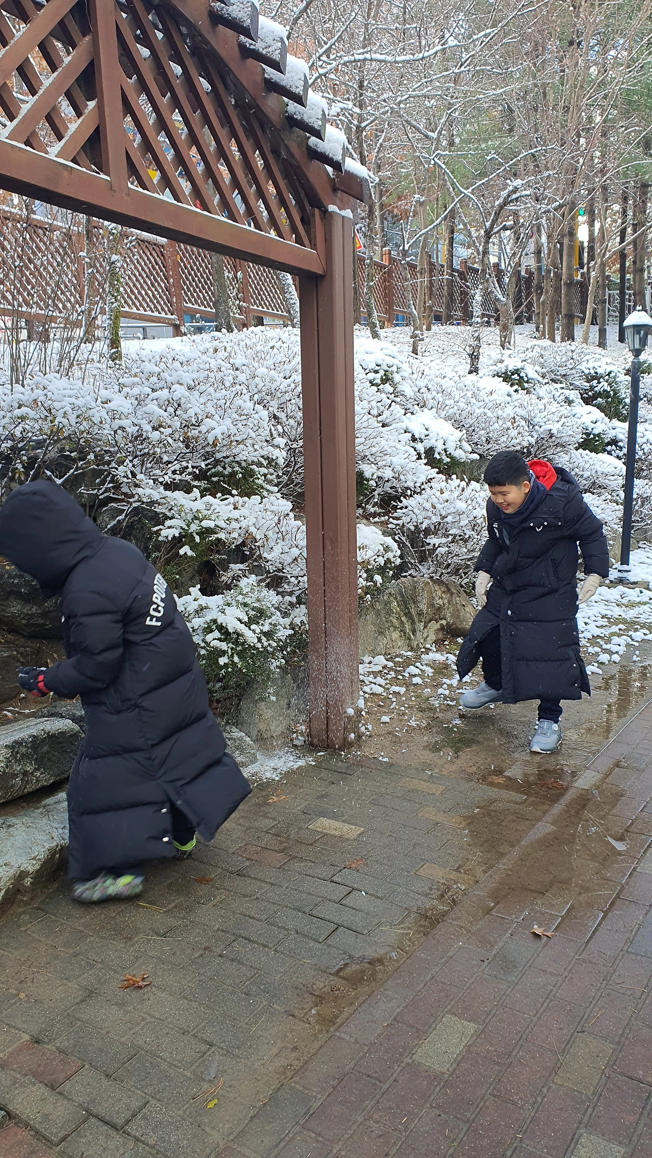 아들에게 오늘 눈싸움하며 재밌는 추억을 만들어