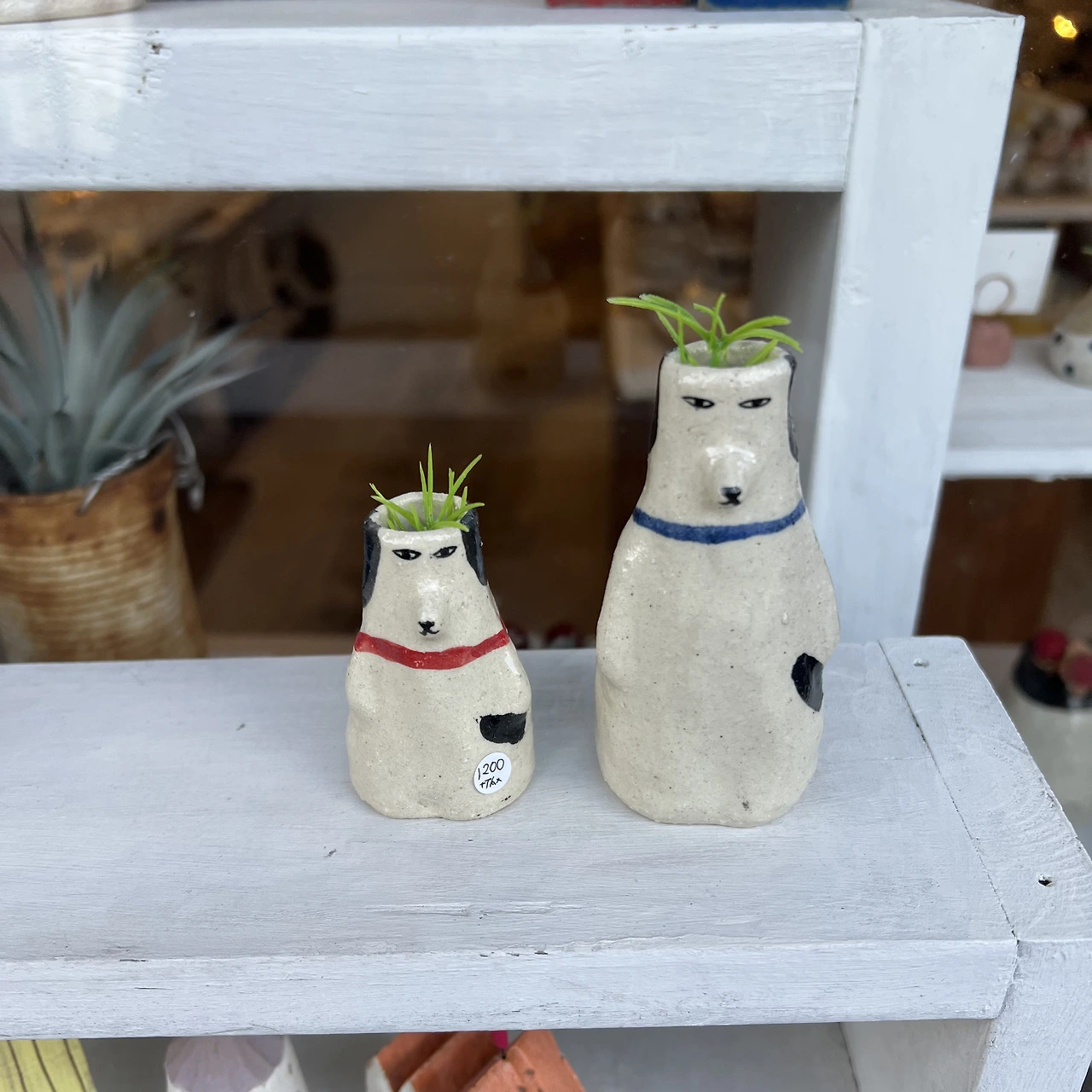 그 생각이 최근에 조금 달라졌다. 얼마 전 유후인을 관광하다가 한 소품가게 입구에 놓인 작은 도자기에 시선이 끌려 발걸음을 멈추게 됐다. 티베트여우처럼 찢어진 눈을 가진 몸이 볼록한 강아지 모양의 미니 화분이었는데, 큰 것과 작은 것 두 개가 같이 놓여있는 모습이 엄마와 아들처럼 보여서 너무 귀여웠다. 그것을 사고 싶었지만, 실용적으로 쓸 수 없을 것 같아서 그냥 나왔다.