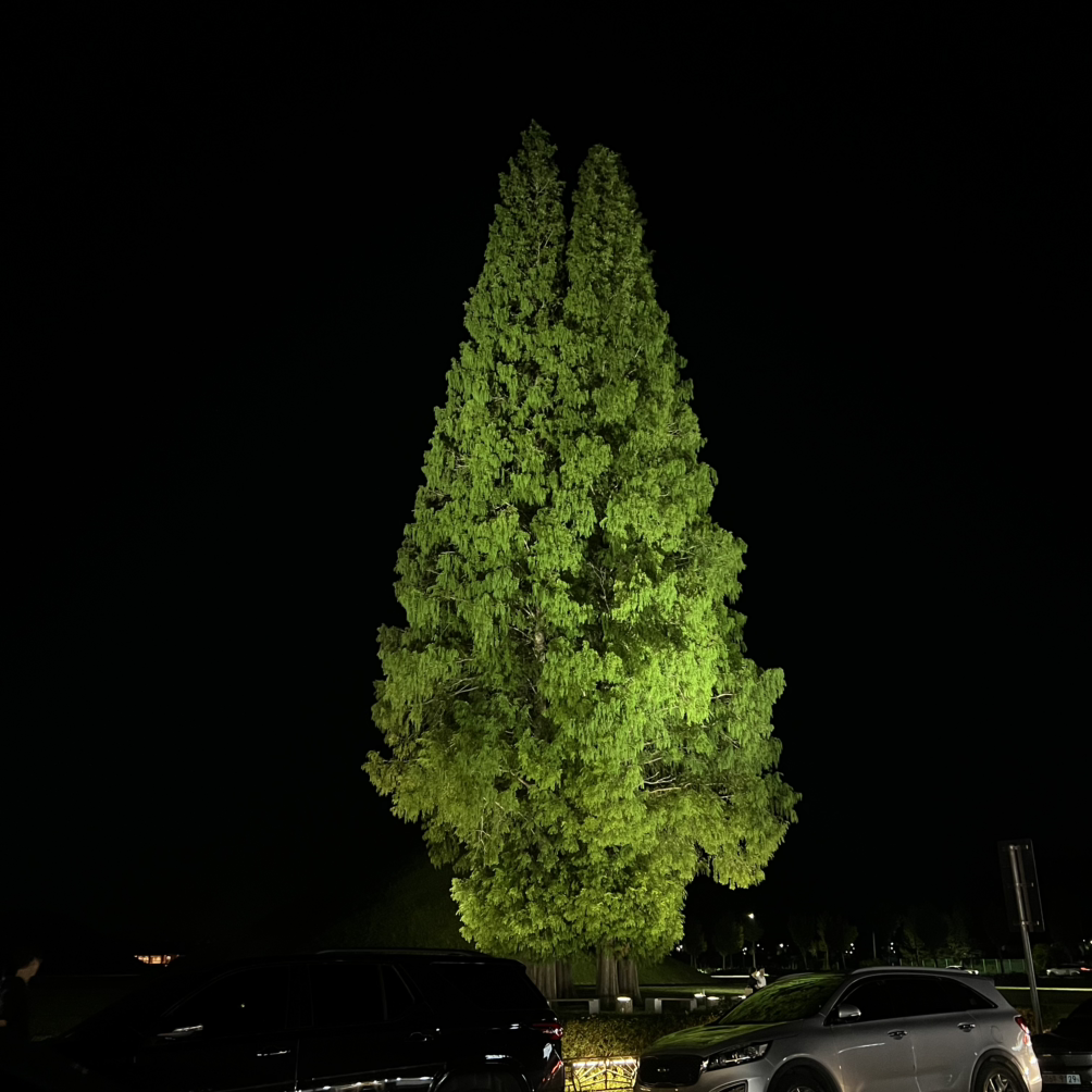 이번 여름 경주에서 더 큰 은행나무를 본 적이 있다. 황남동고분군 주차장 쪽을 우연히 지나다가 밤하늘에 우뚝 솟아오른 은행나무의 자태에 나는 그만 정신을 잃고 말았다. 칠흑 같은 어둠 속에 강한 조명을 받은 은행나무는 잎사귀의 질감이 선명했고 거대한 바위처럼 웅장했다. 자세히 보니 네 그루의 나무가 옹기종기 모여 아름다움을 만들어냈다. 내 눈에는 그들이 단란한 4인 가족처럼 보였다. 아빠, 엄마, 아들 하나, 딸 하나, 주고받는 사랑이 넘쳐 쑥쑥 커져버린 가족.