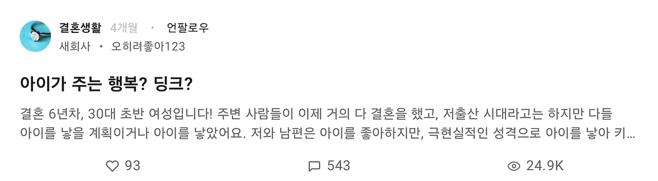 요즘은 딩크 찬성하시는 분들은
