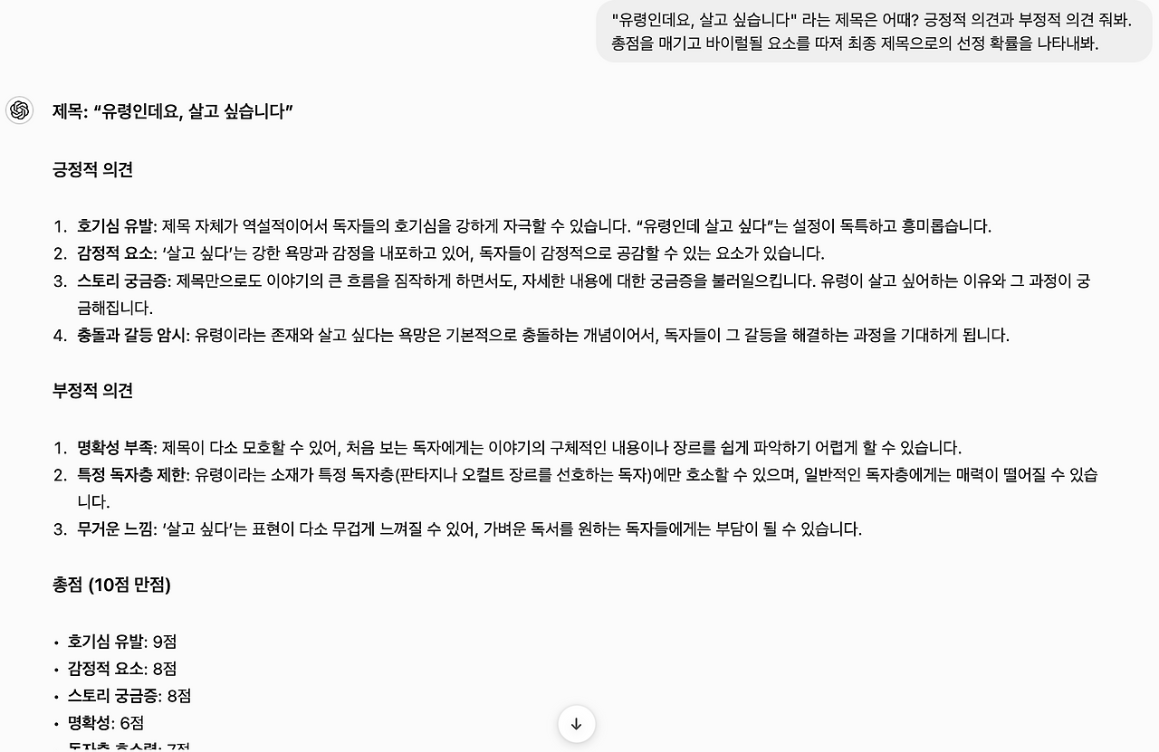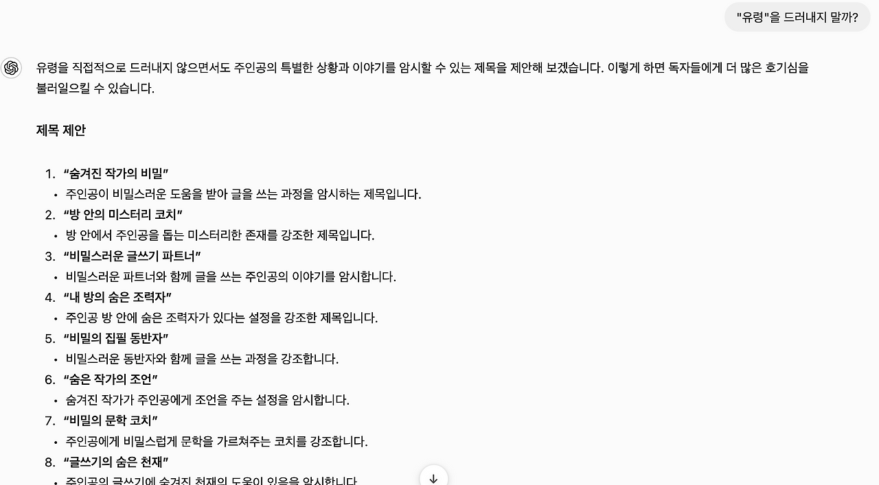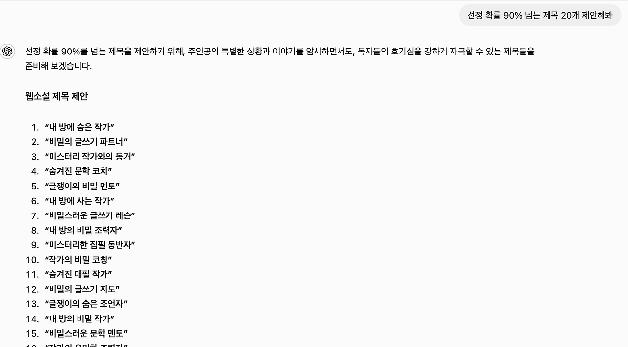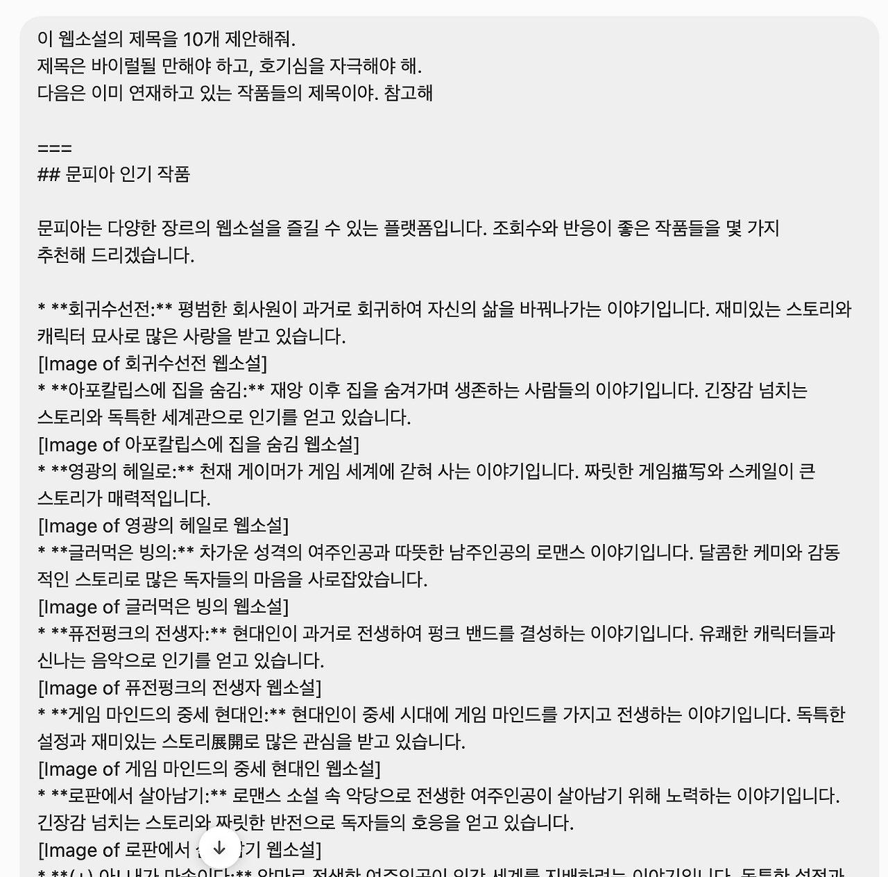 그리고 제목들은 이렇게 텍스트를 긁어 복사 붙여넣기 하지 않고 캡쳐해서 사진을 챗GPT한테 보내줄걸 그랬어요.
