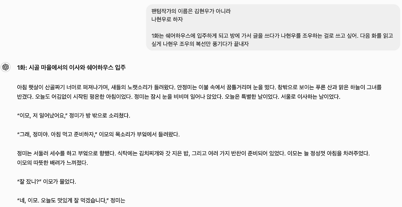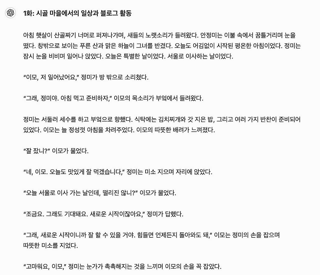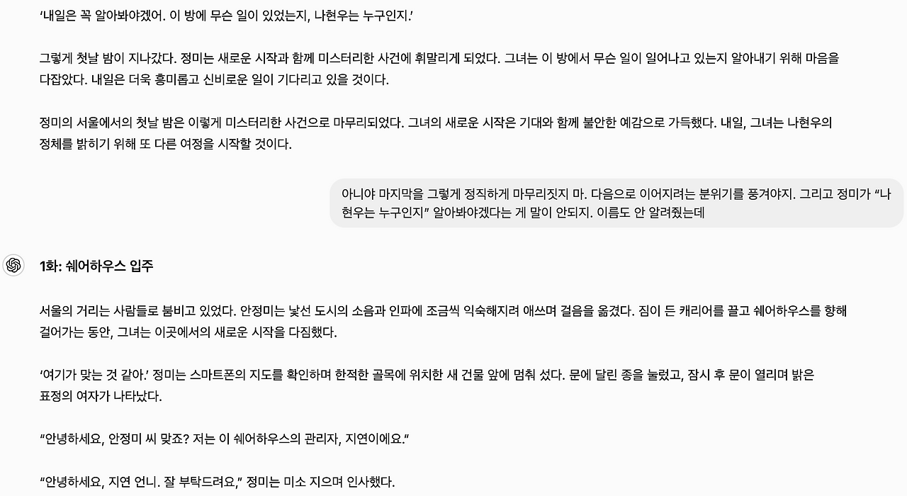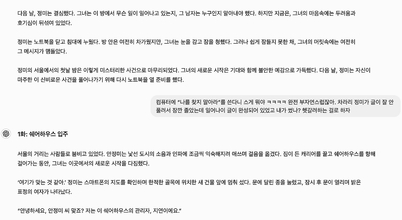 챗GPT에게 메인 작가 역할을 준다면 누가 봐도 챗GPT 작품인지 알만한 것이 나옵니다.