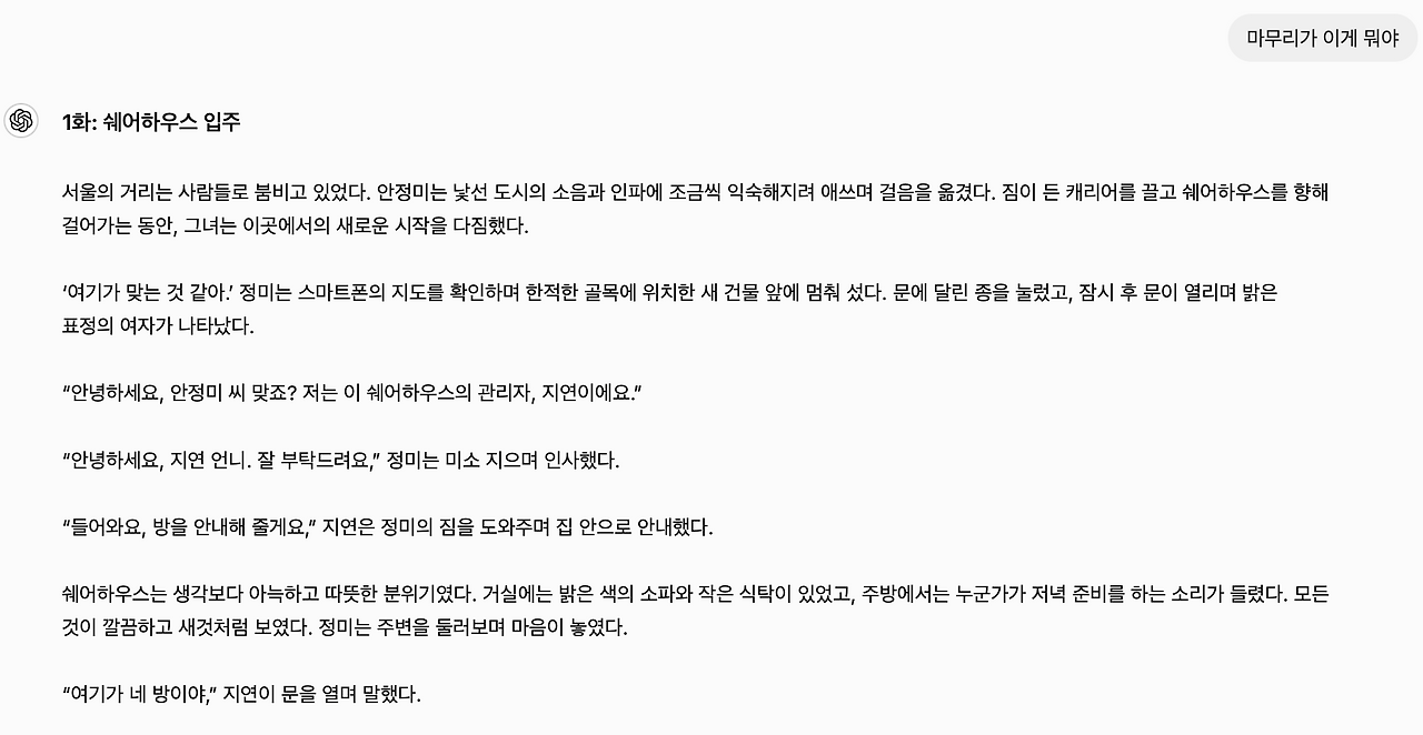 후... 언어모델로 소설쓰기 쉽지 않습니다.