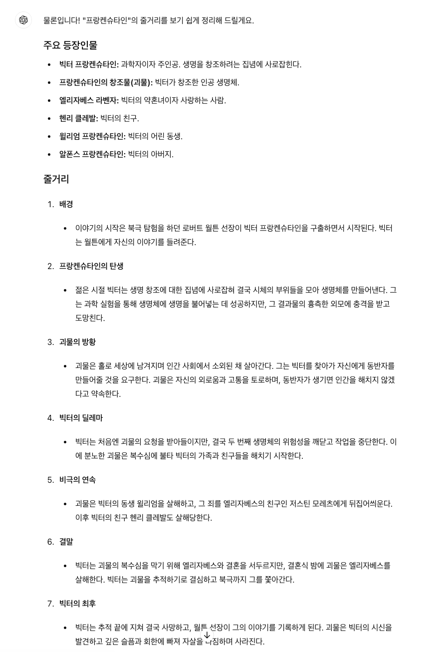 글을 써낸다는 건 생명을 창조해내는 거소가 비등하다고 생각하는데, 잘못된 생명을 창조해냈던 "프랑켄슈타인"