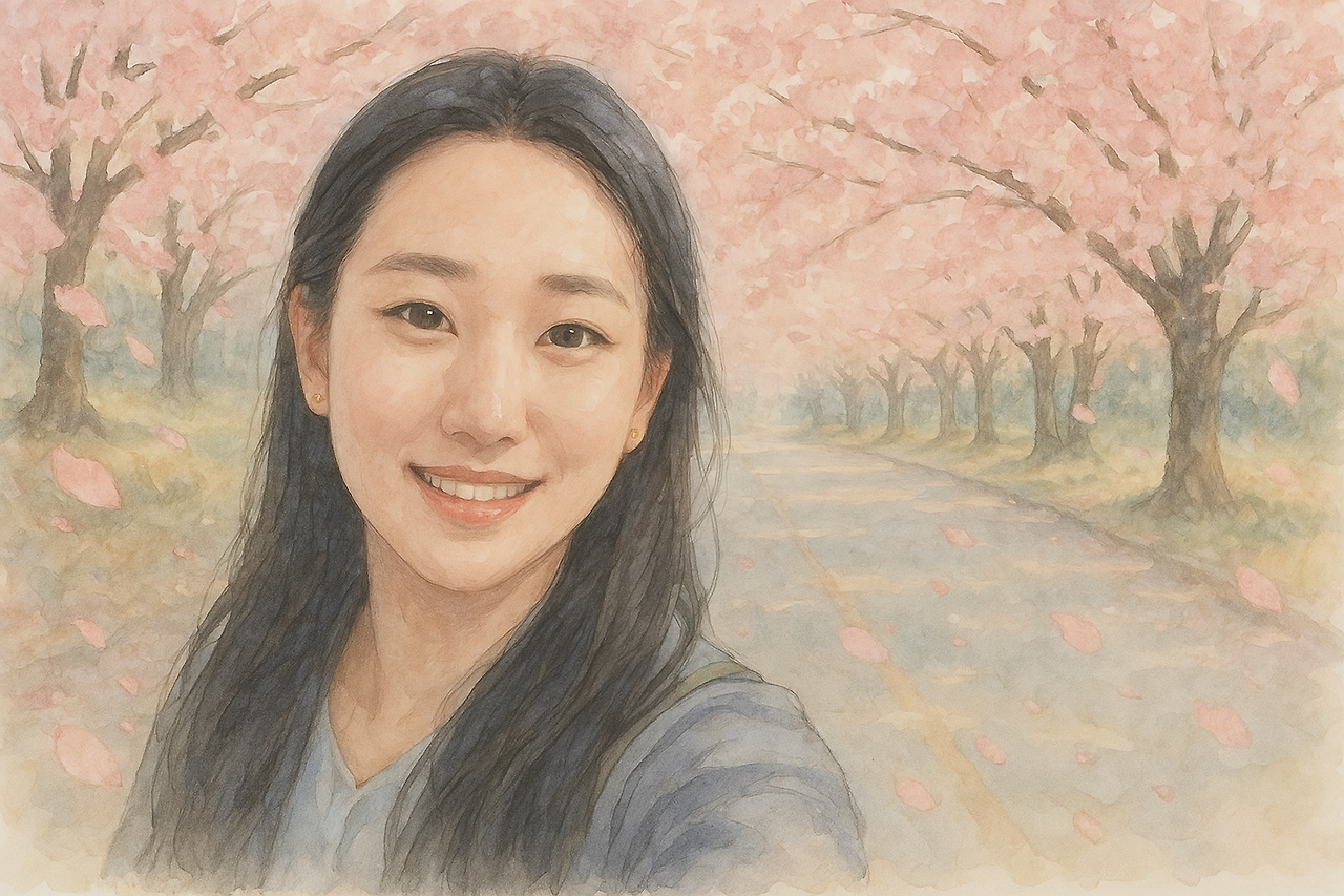 덕분에 멋진 벚꽃 길에서 사진을 남겼다.