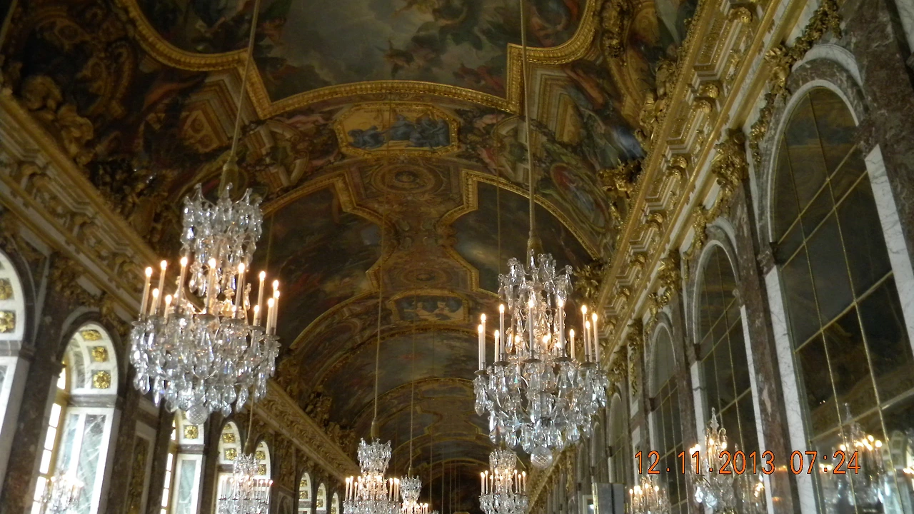 베르사유 궁전에서 가장 화려하다는 거울의 방. 화려한 샹들리에 아래서 귀부인들과 귀족들, 왕족들이 화려한 옷차림으로 무도회를 열던 곳이다. 예배당을 건축하기도 했던 '망사르'의 설계와 '샤를르 르 브룅'가 장식했다고 한다. 또, 정원의 아름다움과 대운하를 한눈에 바라볼 수 있어서 루이14세가 기상과 동시에 미사를 가면서 이 방을 지나갔다고.
