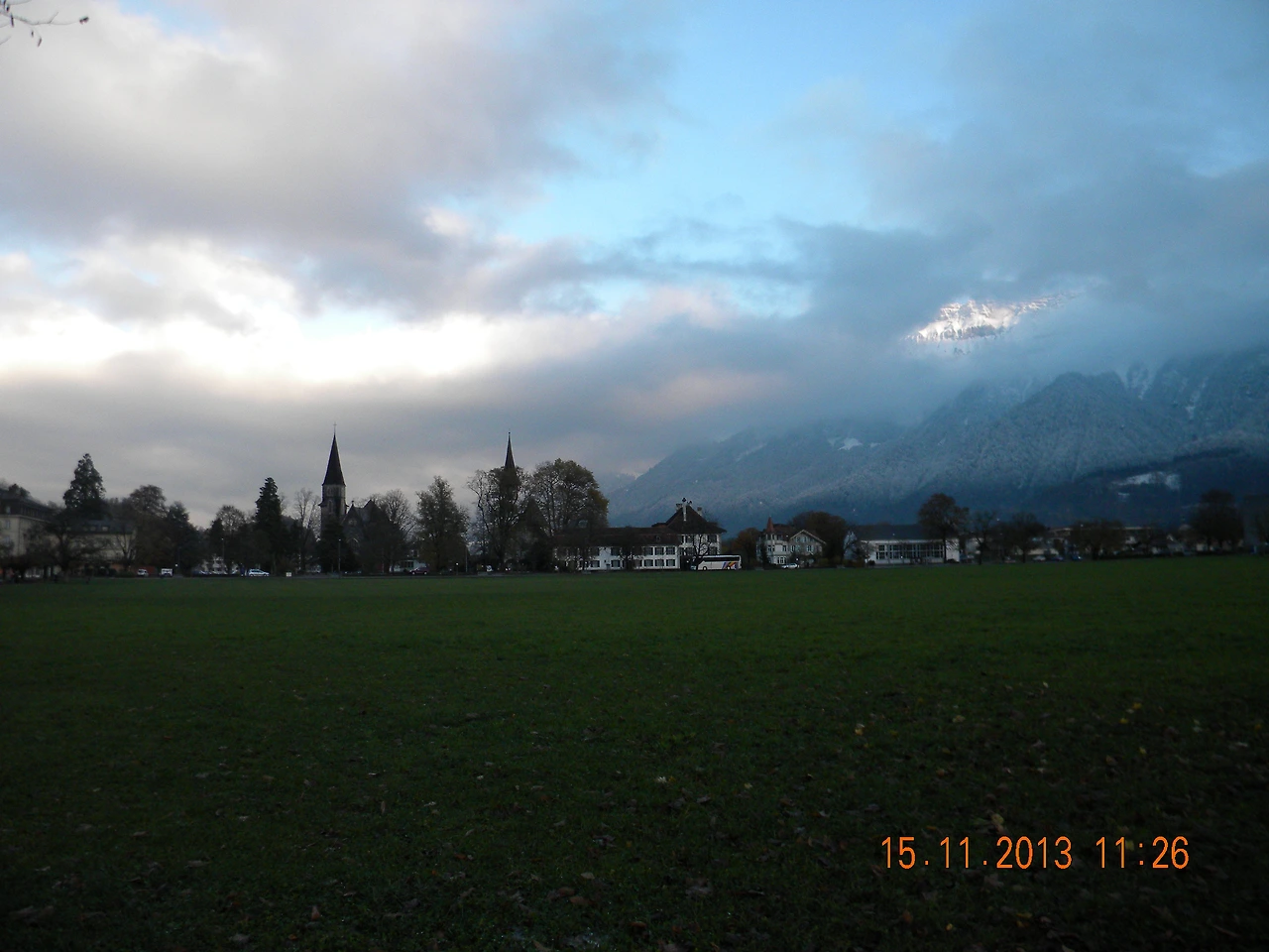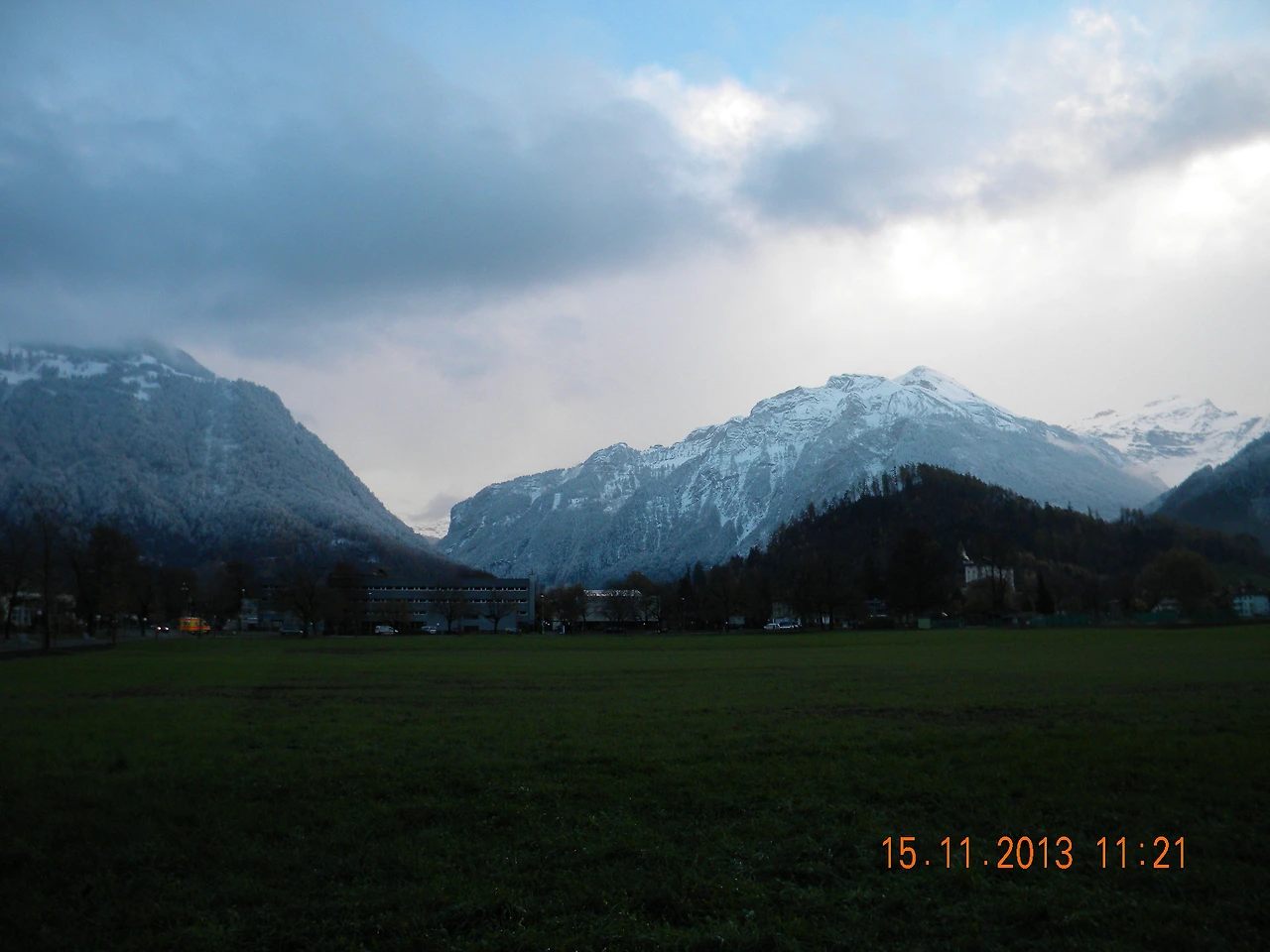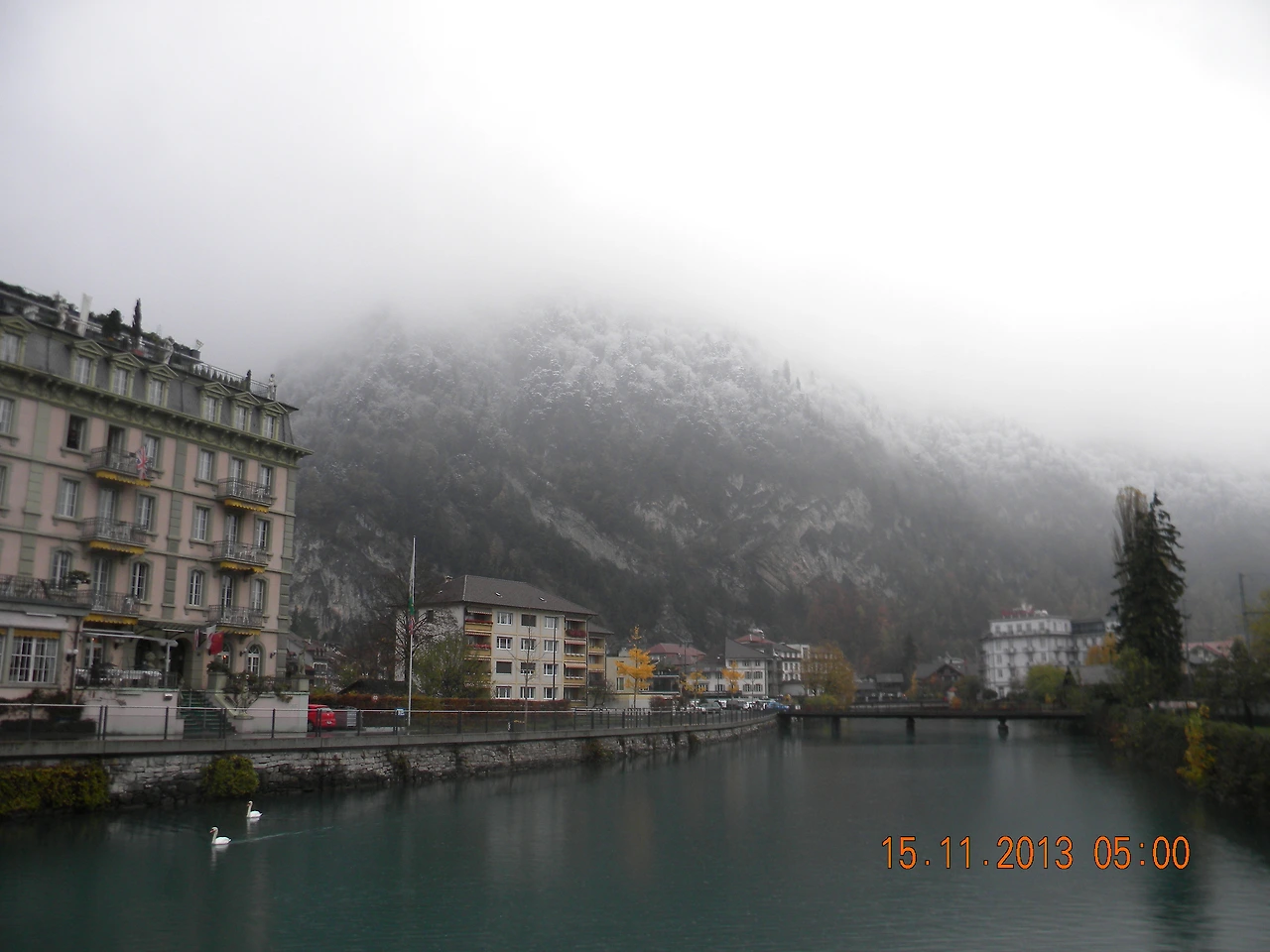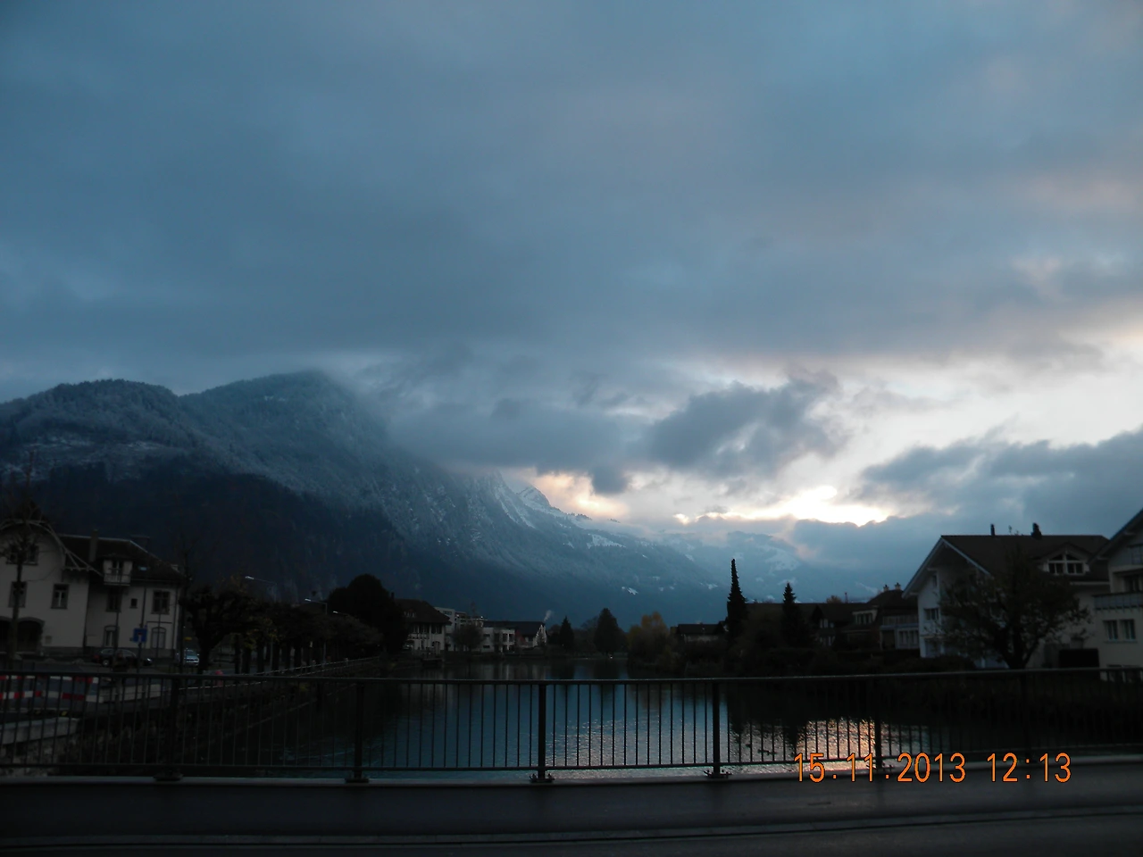 여기서 바라만봐도 좋은데 그 좋다는 융프라우호는 얼마나 아름다울까. 알프스의 산맥과 봉우리들은 높고 험준하기로 유명하지만 밑에서 바라보는 산맥들은 한겨울에도 따뜻하고 포근한 느낌이다. 안개에 가려 수즙을 느낌이기도 했다. 아쉬운 발걸음을 뒤로 하고 인터라켄 동역으로 내려가는 길. 날씨가 개서 빛나는 하얀 태양과 함께 시원한 알프스 산맥이 그 얼굴을 드러내줬다. '내가 바로 알프스다!'하고 바로 보여주는 것이 아니라 조금씩 조금씩 그 모습을 드러내니 애가 탈 수 밖에 없다. - 2013. 11. 15. 일기 중에서