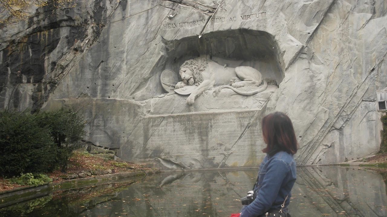 루체른의 또 다른 랜드마크 빈사의 사자상. 사자는 죽어간 스위스 용병들을 상징하며 심장이 찔렸음에도 부르봉 왕조의 백합 문양이 새겨진 방패를 지키고 있다. 왕실에 충성스러운 용병들의 모습을 찬양하고 있다. 사장 위에는 '헬베티아(스위스)의 용감함'이라고 새겨져 있다.