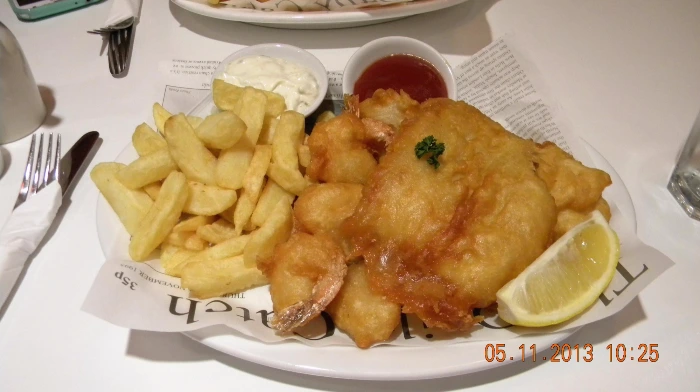 영국에서 그나마 먹을만한 음식이라는 피쉬 앤 칩스. 시드니에 있을 때 종종 먹을 때마다 참 맛있었는데, 이 집것은 느끼한 편이다. 그래도 흰살생선은 언제나 맛있으니까 튀김옷을 벗겨서 먹으면 괜찮다.