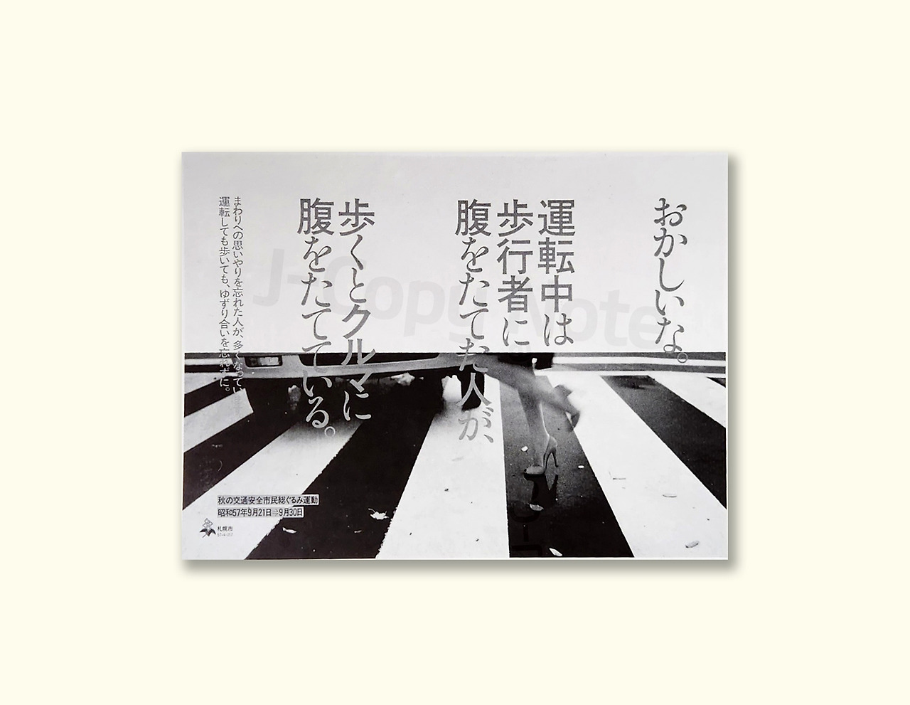 삿포로시에서 만든 교토안전 포스터에 실려 있는 카피입니다. 그저 운전자와 보행자와의 관계에만 해당하는 이야기만은 아닌 것 같습니다. 사람들은 흔히 입장이 바뀌면, 언제 그랬냐는 듯 예전과 정반대의 이야기를 하곤 합니다. <내로남불>이란 조어도 생각이 납니다. 선거철이 다가와서 그런가, 정치뉴스를 보면서도 비슷한 느낌을 받을 때가 많습니다.