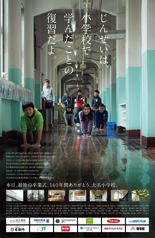 140년간 역사를 이어 온 학교가 문을 닫는다. 2014년 3월, 후쿠오카의 다이묘 초등학교(大名小学校)가 타 학교와 통폐합되면서 마지막 졸업식을 하게 된 것이다. 지역의 기업과 개인들의 후원을 받아, 폐교를 알리는 신문광고가 나왔다. 그 헤드라인이, 바로 저 카피다. '인생은 초등학교에서 배운 것의 복습'이라는.