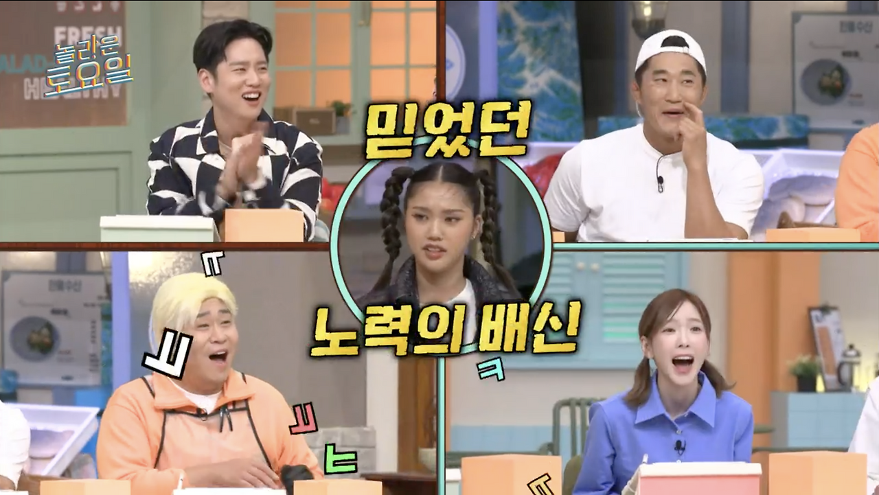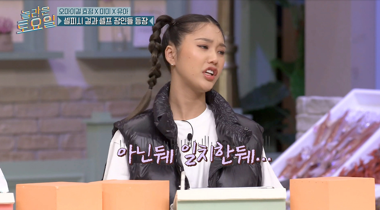 늘 웃는 얼굴로 열정적으로 촬영에 임하던 효정의 분위기가 달라진 것을 보며, 다른 출연자들이 한 마디씩 거들었다. 그때 뭔가 이해할 수 없다는 표정으로 또다른 출연자, 오마이걸의 래퍼 미미가 던지는 한마디.