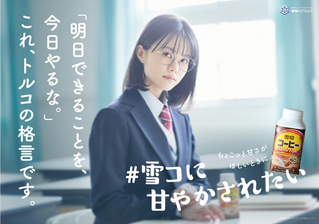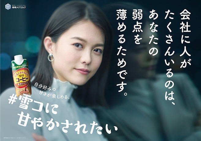 전통의 유제품 업체인 유키지루시 유업에서 나온 雪コ(유키코: 유키지루시 커피우유)의 캠페인이 그런 일본 사회의 단면을 보여준다. 사회에서 '열심 경주'에 내몰려 있는 사람들을 위로하는 캠페인을 한 것이다.