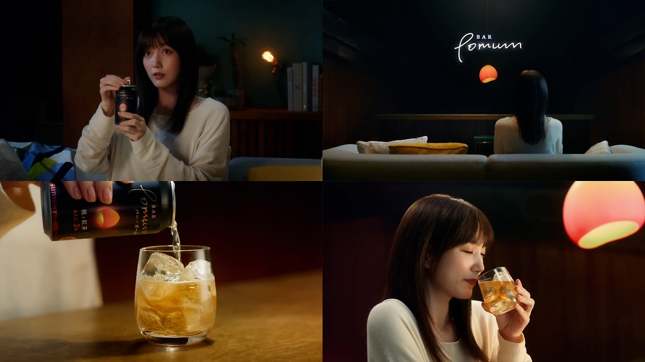 이런 나에게 필요한 것을 알려주는 광고가 있다. 산토리가 만들어 판매하는 '캔 소주 칵테일' 바 포무의 TV광고이다. 바 포무 같은 술을 츄하이 (チューハイ)라고 부른다. 소주에 탄산과 과즙이 들어간 술로 쇼추(焼酎: しょうちゅう)와 하이볼(ハイボール)의 합성어 '쇼츄하이보루'를 줄여서 부르는 이름이다. 이 광고는 20-30대 여성을 타겟으로 집에서 혼자서 즐기는 가벼운 주류로 제품을 포지셔닝하고 있다.