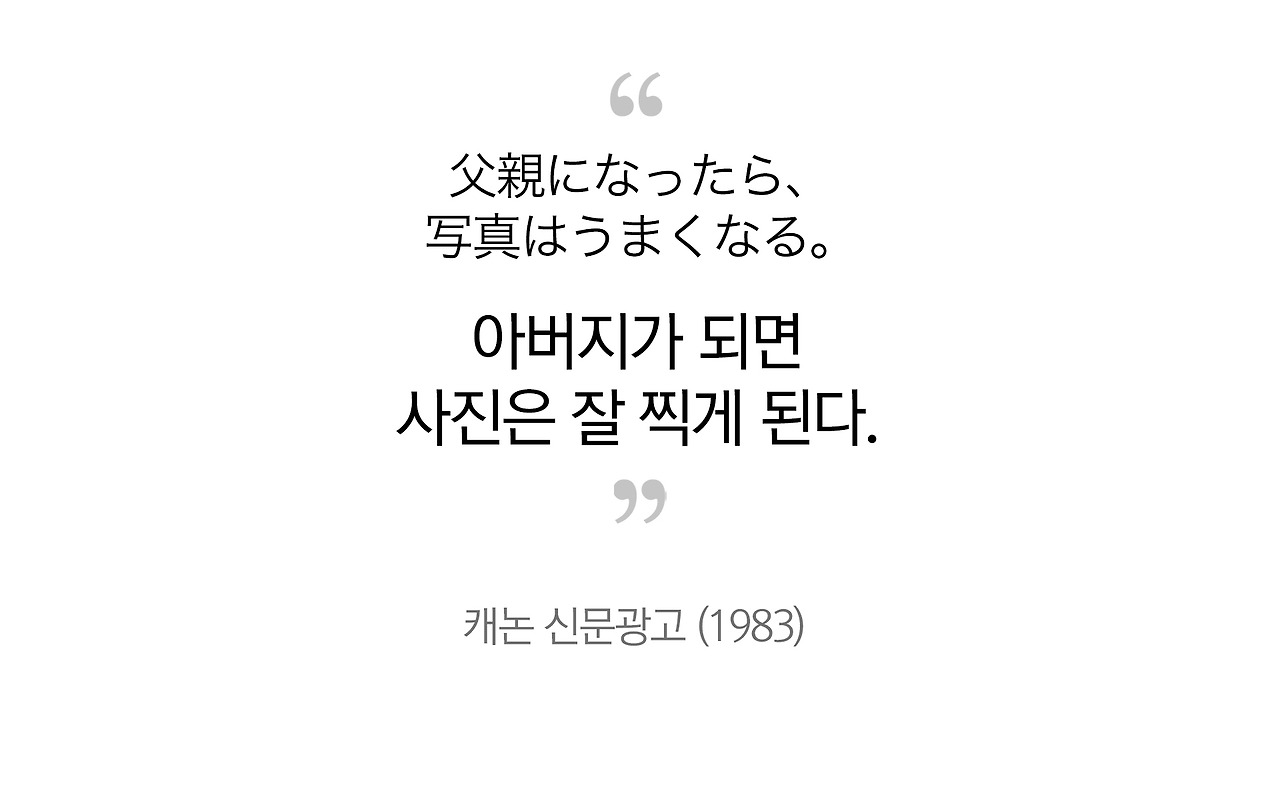 이 카피는 알려준다. 피사체를 사랑하는 것보다 더 좋은 기술은 없다고. 그것이 우리 아버지들이 가진 위대한 사진 노하우였다고.