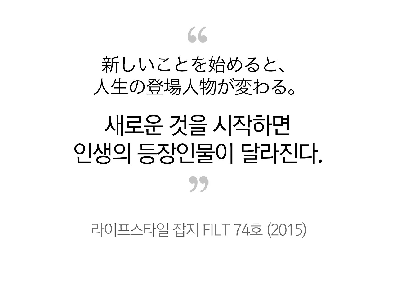 새삼스럽게 새로운 시작이 이끌어 준 인연들과 넓어진 세상에 대해 생각하게 된 건, 바로 이 카피 때문이다.