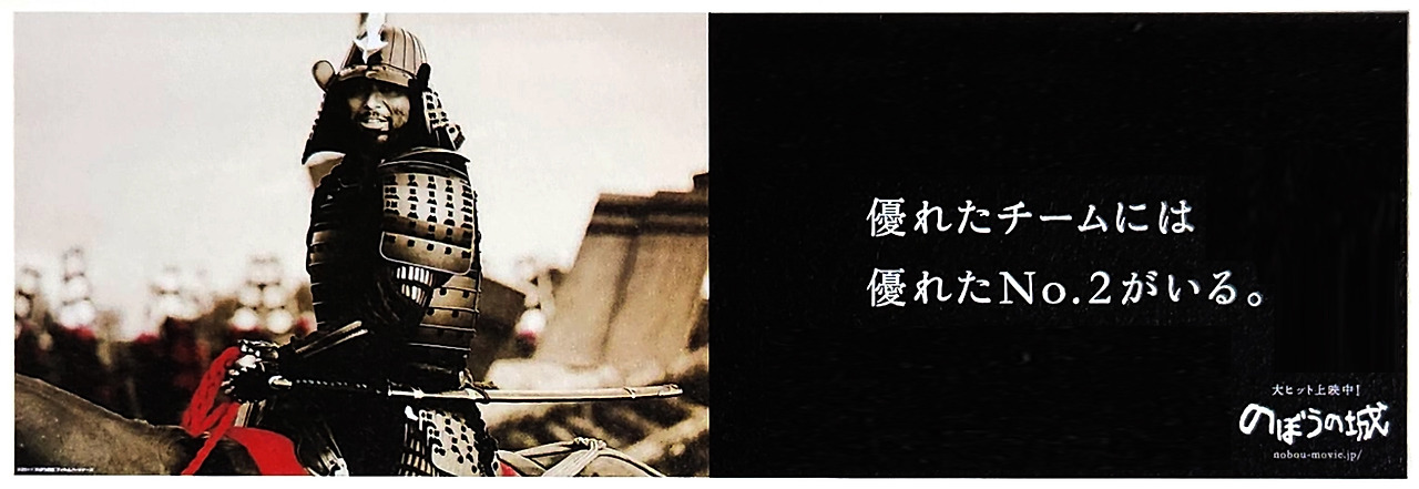 이렇게 눈에 잘 띄지 않는 2인자의 가치를 끄집어 말해주는 카피가 있다. 2011년에 개봉한 일본 영화 노보우의 성 (のぼうの城) 포스터 문구이다.