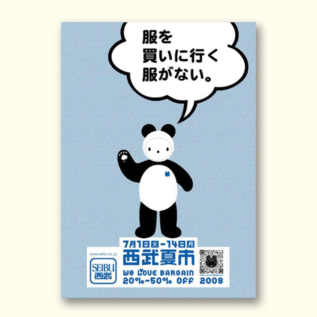 이 카피를 처음 봤을 때, 너무 재미있어서 회사 막내에게 보여줬더니 '온라인으로 주문하면 되는데요' 라고 합니다. 마치, 6.25 때 '밥이 없어서 고생했다'는 할아버지 말씀에 '피자 주문하면 되는데요'라고 손자가 답하는 느낌이랄까요. 세이부 백화점의 세일을 안내하는 포스터 자체도 귀엽습니다. 옷장에 가득히 걸려있는 옷을 보면서도, '입을 옷이 없다'고 안타까워하는 분들을 유혹하는 위트있는 카피가 웃음을 짓게 만드네요.